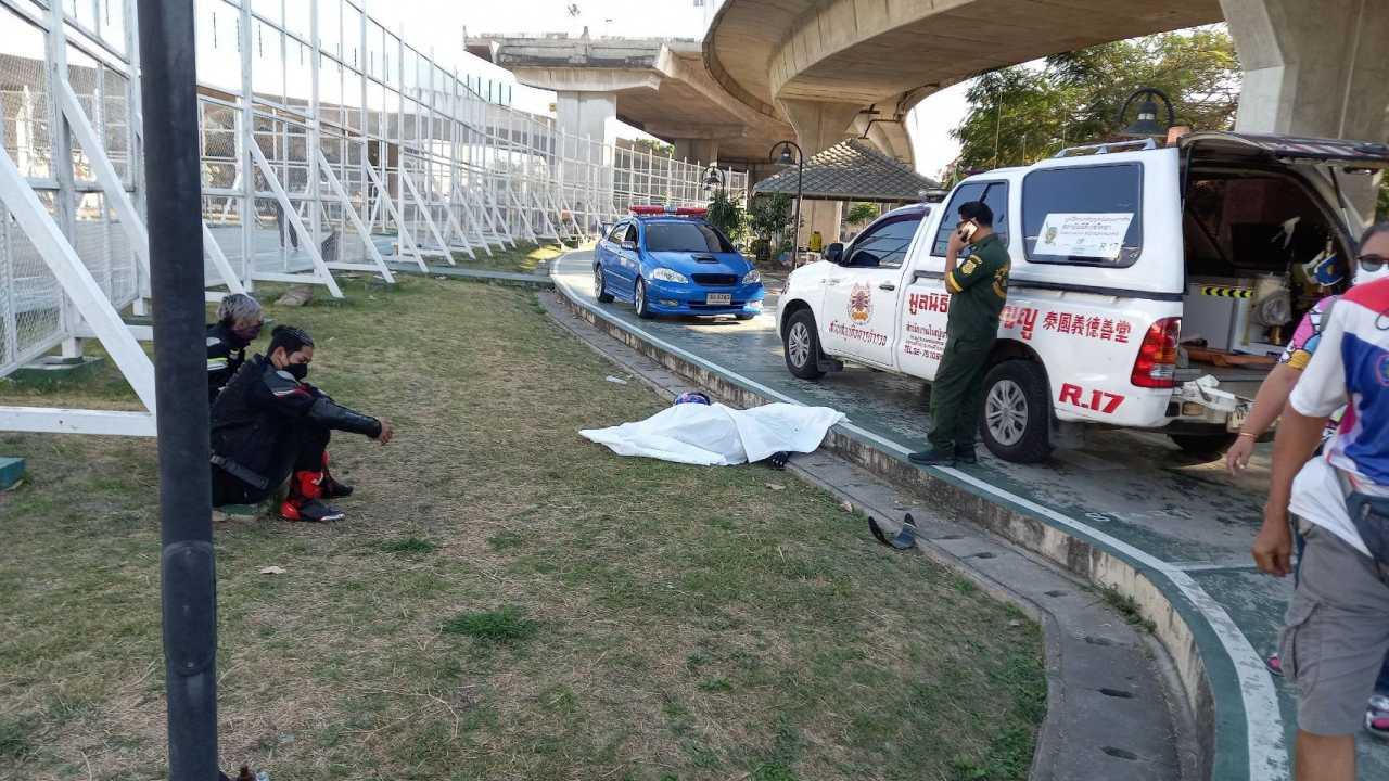 เมื่อเวลา 09.55 น. วันที่ 12 ธ.ค. 64 ร.ต.อ.ประยูร วิทยา รอง สว.(สอบสวน) สน.ราษฎร์บูรณะ รับแจ้งอุบัติเหตุรถบิ๊กไบค์ตกสะพานมีผู้เสียชีวิต บริเวณสวนวงแหวนสุขสวัสดิ์ ใต้สะพานภูมิพล หรือ สะพานวงแหวนสุขสวัสดิ์ ด้านทิศทางมุ่งหน้าทางลงถนนสุขสวัสดิ์ แขวงและเขตราษฎร์บูรณะ กทม. จึงรุดไปตรวจสอบพร้อมแพทย์นิติเวช รพ.ศิริราช และอาสาสมัคร มูลนิธิร่วมกตัญญู