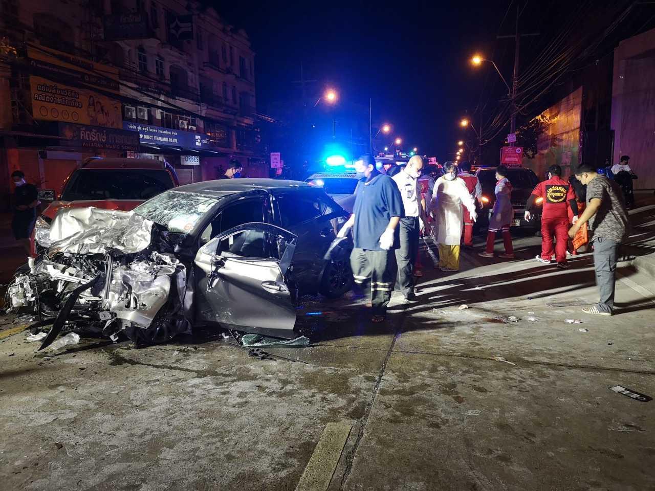 เมื่อเวลา 01.30 น. วันที่ 31 ธ.ค. 64 ร.ต.ท.ชยุตม์ บุญละเอียด รอง สว.(สอบสวน)สน.โคกคราม รับแจ้งรถยนต์ชนกันมีผู้เสียชีวิตและบาดเจ็บ บริเวณใกล้กับปั๊มน้ำมันเอสโซ่ ถนนนวลจันทร์ แขวงนวลจันทร์ เขตบึงกุ่ม กทม. จึงรุดไปตรวจสอบพร้อมอาสาสมัครมูลนิธิร่วมกตัญญู ที่เกิดเหตุเป็นถนน 2 เลนสวนกัน ใกล้กับปากซอยนวลจันทร์ 20