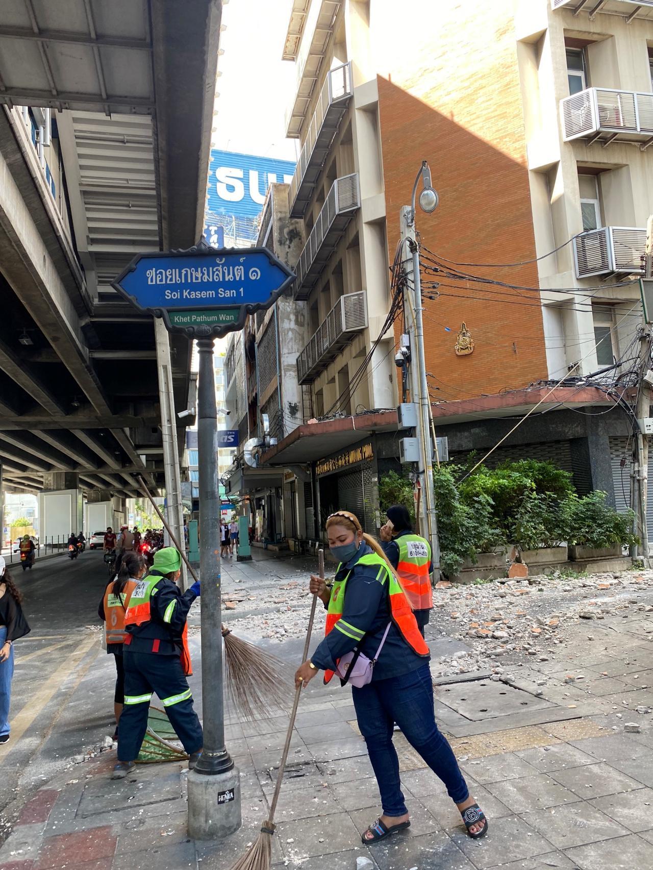 นายกฤษวัชร์ ศรีสุสรรญ หัวหน้าฝ่ายโยธา สำนักงานเขตปทุมวัน กล่าวว่า ที่เกิดเหตุเป็นอาคารสูง 10 ชั้น ผนังคอนกรีตบริเวณชั้นที่ 8 หลุดร่วงลงมามีผู้ได้รับบาดเจ็บจำนวน 5 คน เจ้าหน้าที่อาสาสมัครนำส่งโรงพยาบาลกล้วยน้ำไท จำนวน 3 คน ปฐมพยาบาลในที่เกิดเหตุ 2 คนสำหรับอาคารที่เกิดเหตุ เป็นอาคารโครงสร้างเก่าอายุมากกว่า 30 ปี โดยทางโยธาเขต ระบุว่า เท่าที่ตรวจสอบเบื้องต้นโครงสร้างอาคารไม่ได้รับผลกระทบ แต่ยังกังวลในเรื่องของผนังที่เกิดการกร่อน ดังนั้น แนวทางแก้ไขจัดการ เตรียมส่งเจ้าหน้าที่ขึ้นไปแซะร่องผนังออกให้หมด เพื่อป้องกันการหลุดร่วงลงอีก