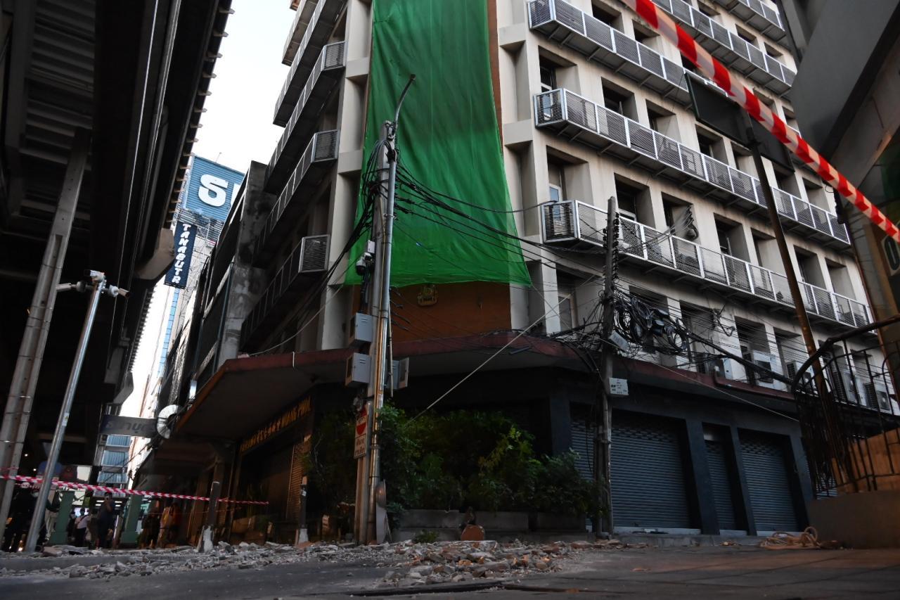 ต่อมาเวลา 17.00 น. ทางสำนักงานเขตปทุมวัน พร้อมด้วยสำนักงานโยธา-กรุงเทพมหานคร ร่วมกันลงพื้นที่ตรวจสอบอาคารดังกล่าว พร้อมทั้งใช้ผ้าสแลนมาขึงตัวอาคารตั้งแต่ชั้นบนสุดถึงชั้นล่างสุด เพื่อป้องกันไม่ให้เศษกระเบื้องหล่นลงมาอีก