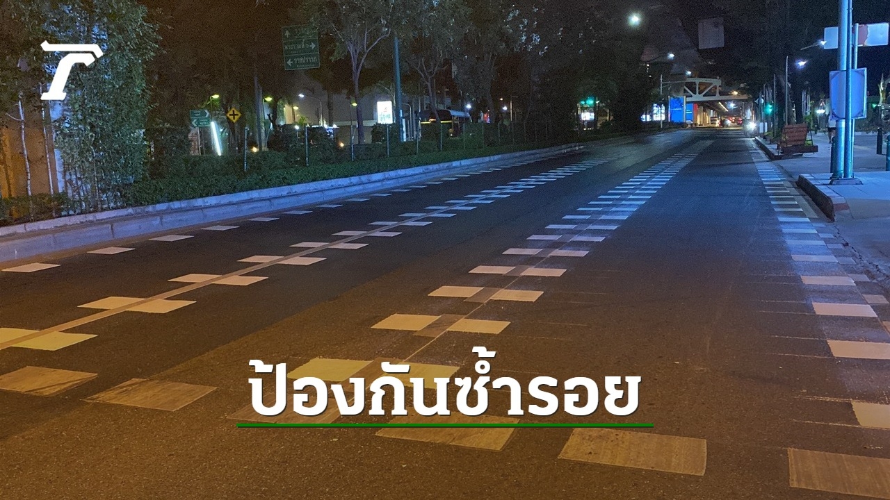 เจ้าหน้าที่ กทม.เข้าตีเส้นนูนชะลอความเร็วบนถนนพญาไท ช่วงก่อนถึงทางม้าลายหน้าสถาบันโรคไตภูมิราชนครินทร์แล้ว เพื่อลดความเสี่ยงเกิดอุบัติเหตุซ้ำรอยกรณีของหมอกระต่าย