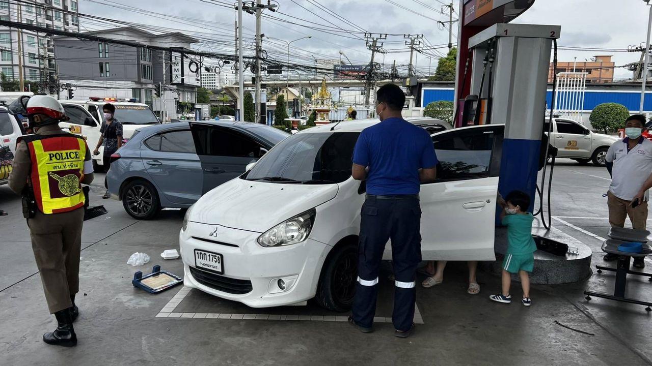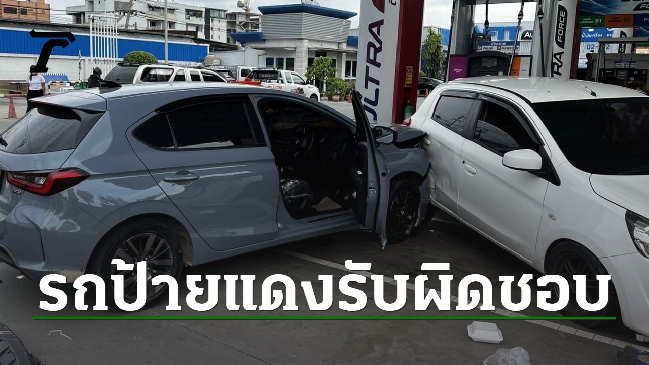 อุทาหรณ์สอนใจคนขับรถไม่แข็งต้องระวัง สาวขับฮอนด้าป้ายแดงพุ่งอัดรถกำลังเติมน้ำมันคาหัวจ่าย เสียงดังสนั่นปั๊ม ปตท.บางขุนเทียน ทำพนักงานเจ็บขาขาด สาวรถป้ายแดงรถมีประกัน พร้อมชดใช้