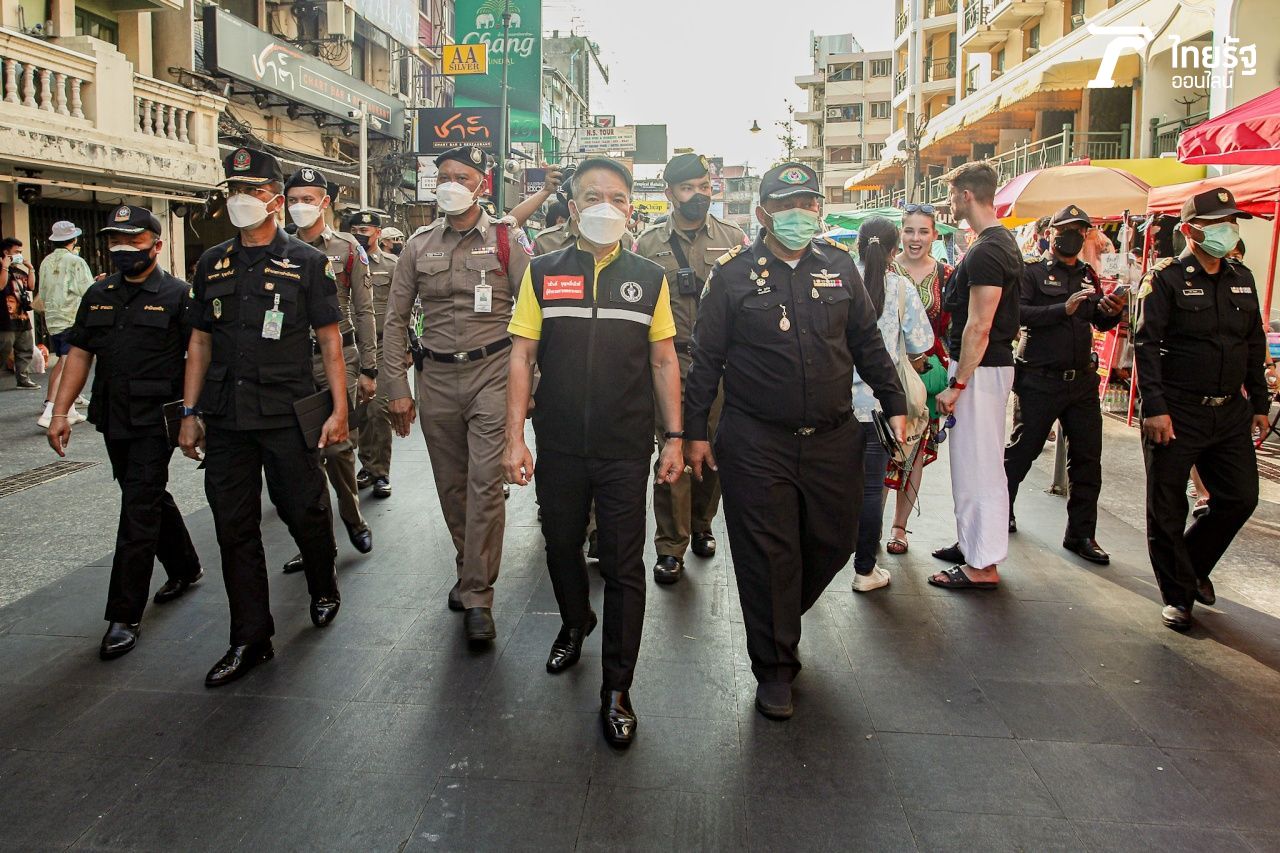 ประมวลภาพ วันที่ 2 เทศกาลสงกรานต์ ถนนข้าวสาร เจ้าหน้าที่กำชับคุมเข้มงดเล่นน้ำ พร้อมเผยหากผู้ใดนำปืนฉีดน้ำเข้าไปก็จะยึดไว้