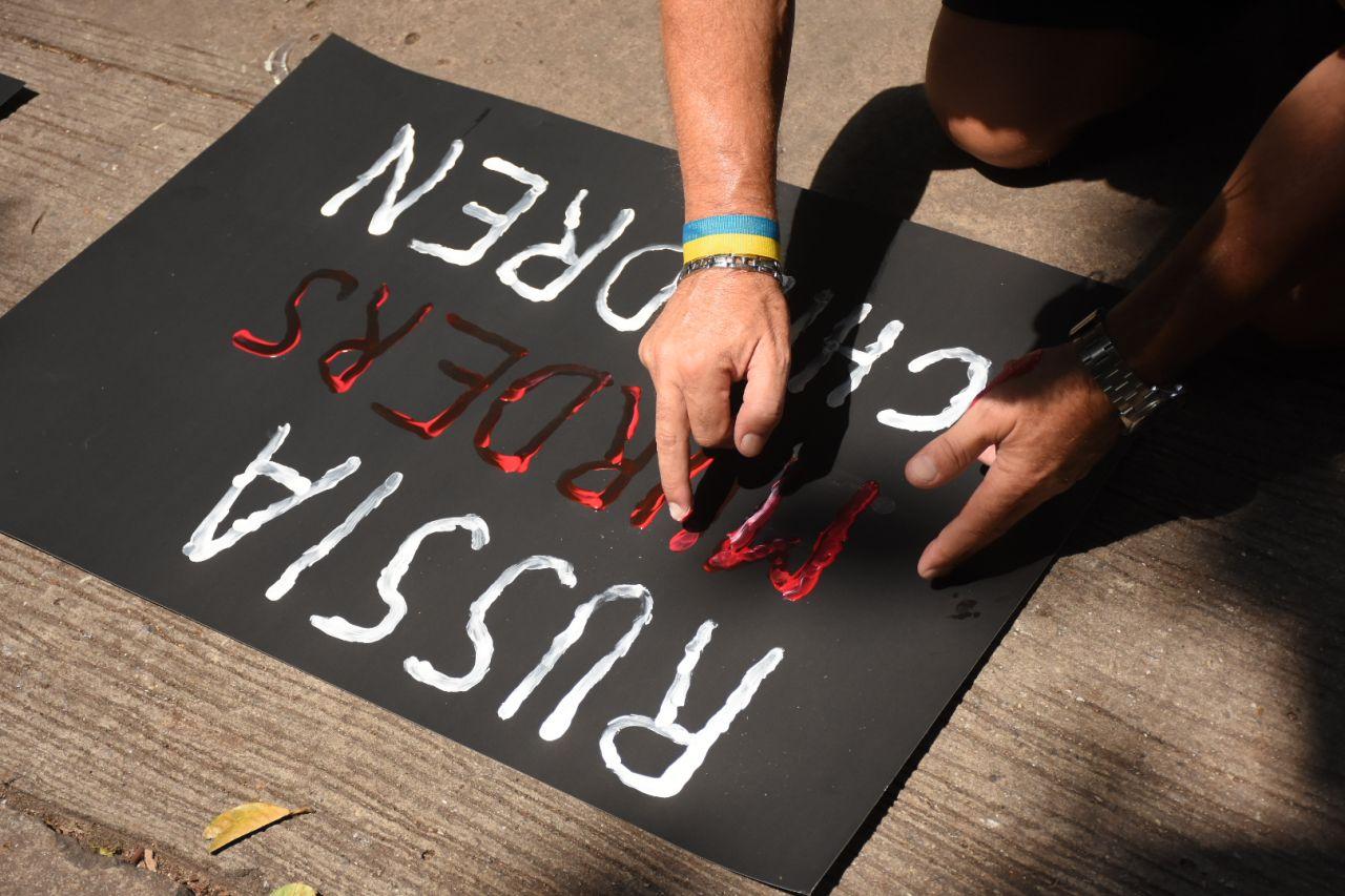จากนั้นได้ร่วมกันร้องเพลงชาติยูเครน ต่อด้วยการวางดอกไม้และนำเทียนมาวางเพื่อเป็นการไว้อาลัยให้กับเด็กๆ ที่เสียชีวิตในสงครามระหว่างรัสเซียกับยูเครน อีกทั้งยังมีการเขียนป้ายประณามการกระทำของรัสเซียเป็นภาษายูเครน/อังกฤษ และภาษาไทย โดยมีกำลังเจ้าหน้าที่ตำรวจคอยดูแลความสงบอยู่ด้านหน้าสถานทูต หลังจากเสร็จกิจกรรมดังกล่าวชาวยูเครนทั้งหมดก็ได้แยกย้ายกันไปอย่างสงบ.
