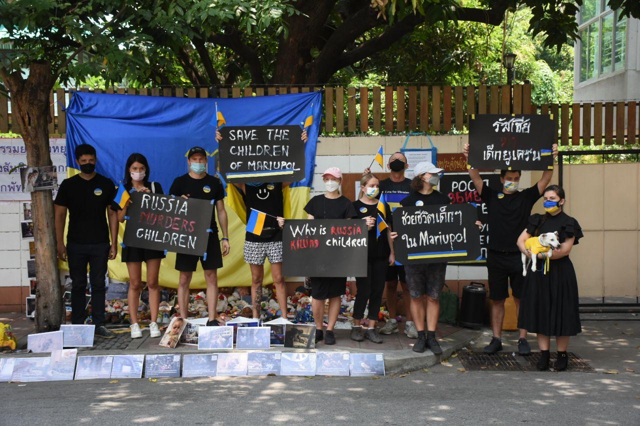 เมื่อวันที่ 20 เม.ย. 2565 ชาวยูเครนที่อาศัยอยู่ในประเทศไทยจำนวนหนึ่ง ร่วมกันนำตุ๊กตาหลากหลายขนาดจำนวนมาก ซึ่งแต่ละตัวมีร่องรอยความเสียหายคล้ายบาดแผล รวมถึงเสื้อผ้า รองเท้าที่มีรอยไฟไหม้ เปรียบเสมือนว่าเป็นตัวแทนของเด็กๆชาวยูเครนที่เสียชีวิตในสงคราม ที่ริมกำแพงฝั่งตรงข้ามสถานทูตสหพันธรัฐรัสเซีย