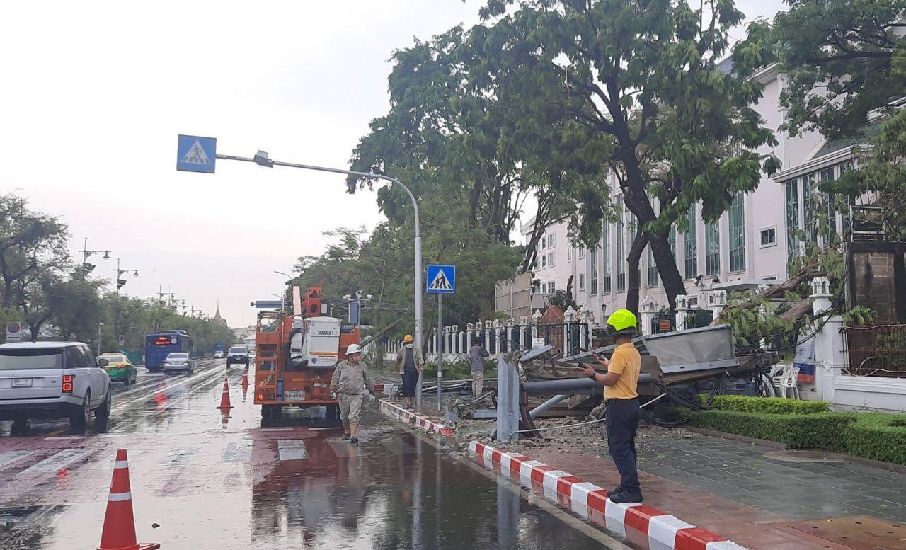 ทั้งนี้ บริเวณรอบสนามหลวงและบริเวณใกล้เคียง มีต้นไม้ถอนโคนล้มหลายต้นทั้งกีดขวางจราจร ทับสายไฟ จากแรงลมกระโชกฝนฟ้าคะนอง เจ้าหน้าที่เร่งตัดเคลื่อนย้ายให้พ้นการกีดขวางต่อไป