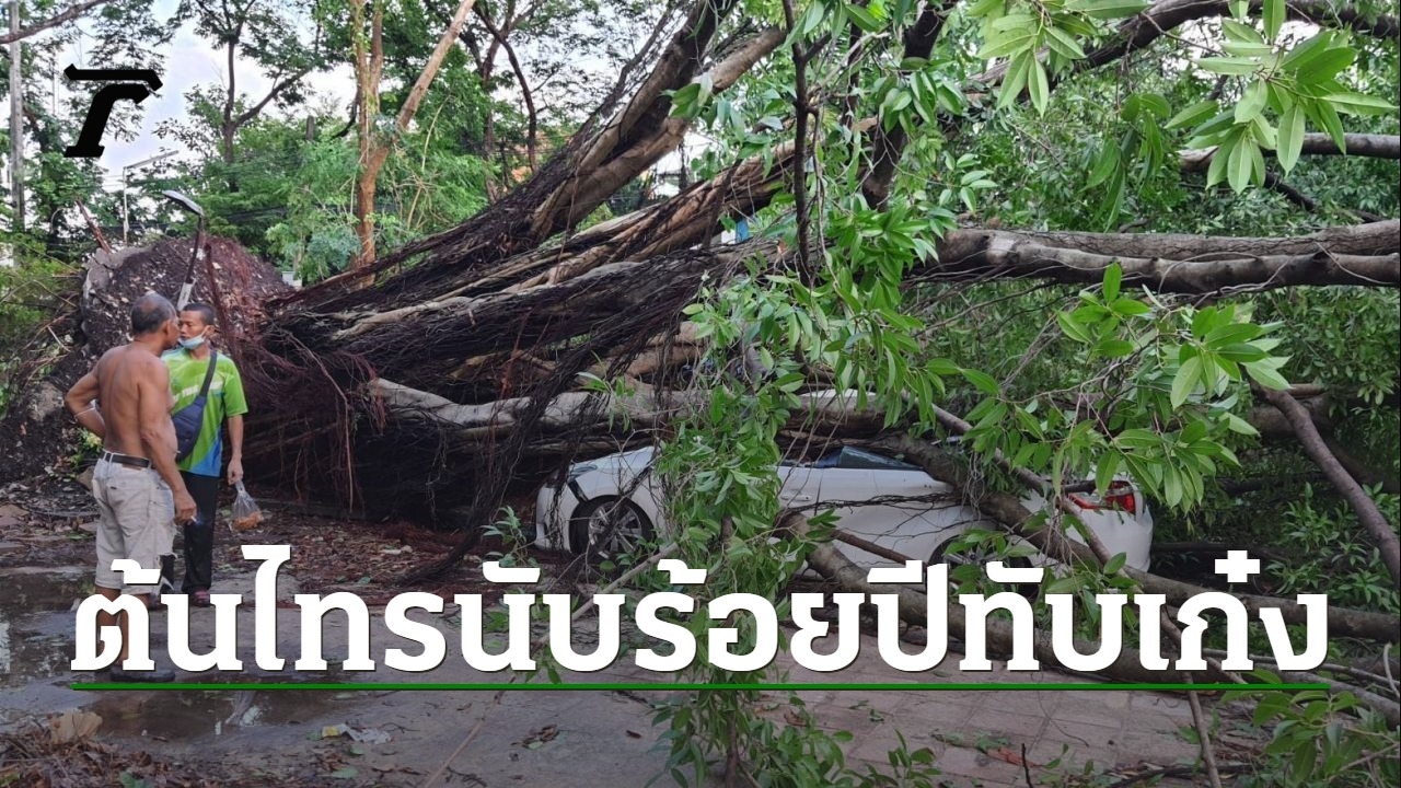 พิษฝนกระหน่ำกรุงต้นไทรวัดลิงขบในย่าน ซ.จรัญสนิทวงศ์ 46 ที่มีอายุหลายร้อยปี หักโค่นทับรถเก๋งชาวบ้านจอดฝากไว้ได้รับความเสียหาย ขณะที่ จนท.กทม.และรุกขกรเข้ามาสำรวจต้นไทรดูว่ายังรักษาได้หรือไม่