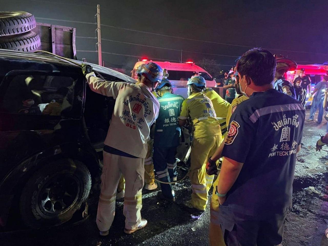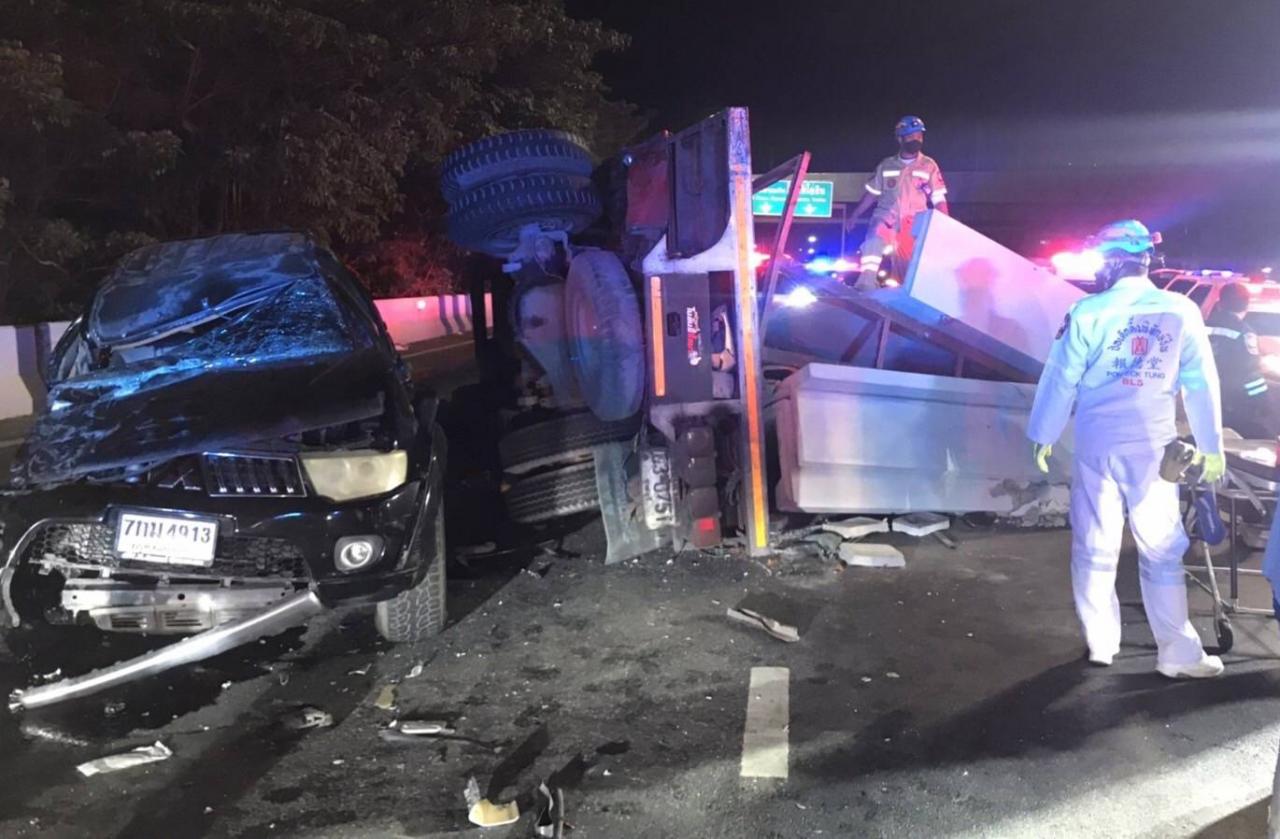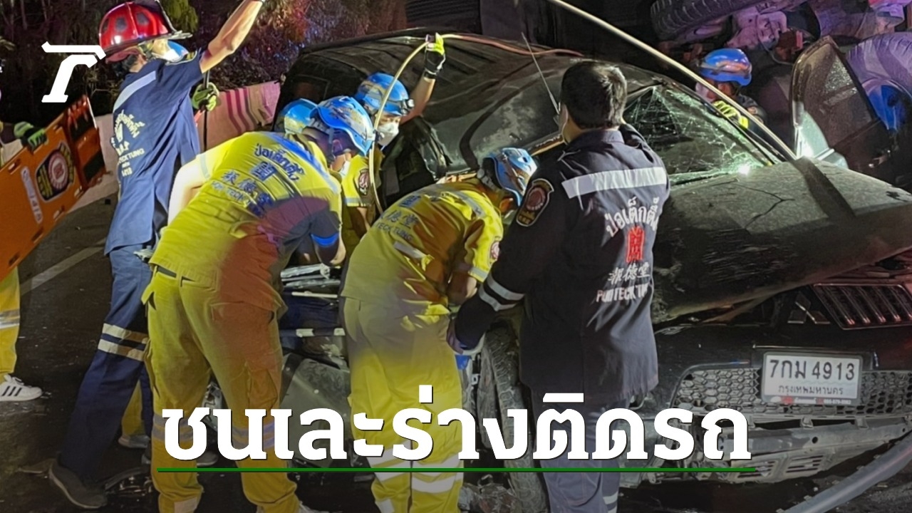 ซิ่งมรณะ ผบ.หมู่ 191 ขับปาเจโร่ สปอร์ต เสียหลักเสยท้ายรถเทรลเลอร์ดับคาบนสะพานรัชวิภา จนท.ต้องเร่งใช้เครื่องตัดถ่างนำร่างผู้เสียชีวิตออกจากรถ พร้อมตรวจสอบกล้องวงจรปิดเพื่อหาสาเหตุ