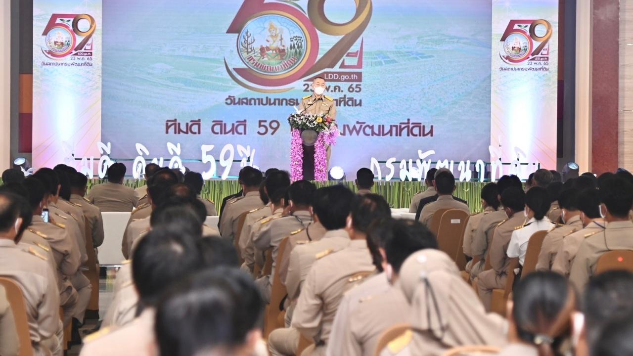 พด.ครบรอบ 59 ปี โชว์ผลงานกว่า 5 ทศวรรษ ภายใต้หัวข้อ "ทีมดี ดินดี 59 ปี กรมพัฒนาที่ดิน" มุ่งมั่นขับเคลื่อนการพัฒนาทรัพยากรที่ดินให้เกษตรกรใช้ประโยชน์ สร้างความมั่นคงทางอาหาร และความมั่งคั่งให้กับภาคการผลิต