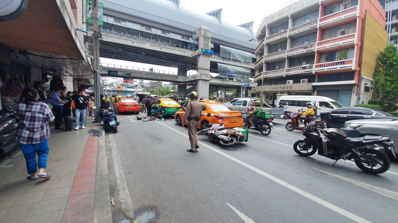 เมื่อเวลา 12.30 น.วันที่ 26 พ.ค. ร.ต.อ.จีรศักดิ์ บุญยืนนาน รองสว.(สอบสวน) สน.พญาไท รับแจ้งมีอุบัติเหตุรถยนต์ชนรถจยย.จำนวนหลายคัน มีผู้ได้รับบาดเจ็บเหตุเกิดบริเวณแยกนิคมมักกะสัน ถนนราชปรารภ แขวงมักกะสัน เขตราชเทวี กรุงเทพฯ จึงเดินทางไปตรวจสอบ