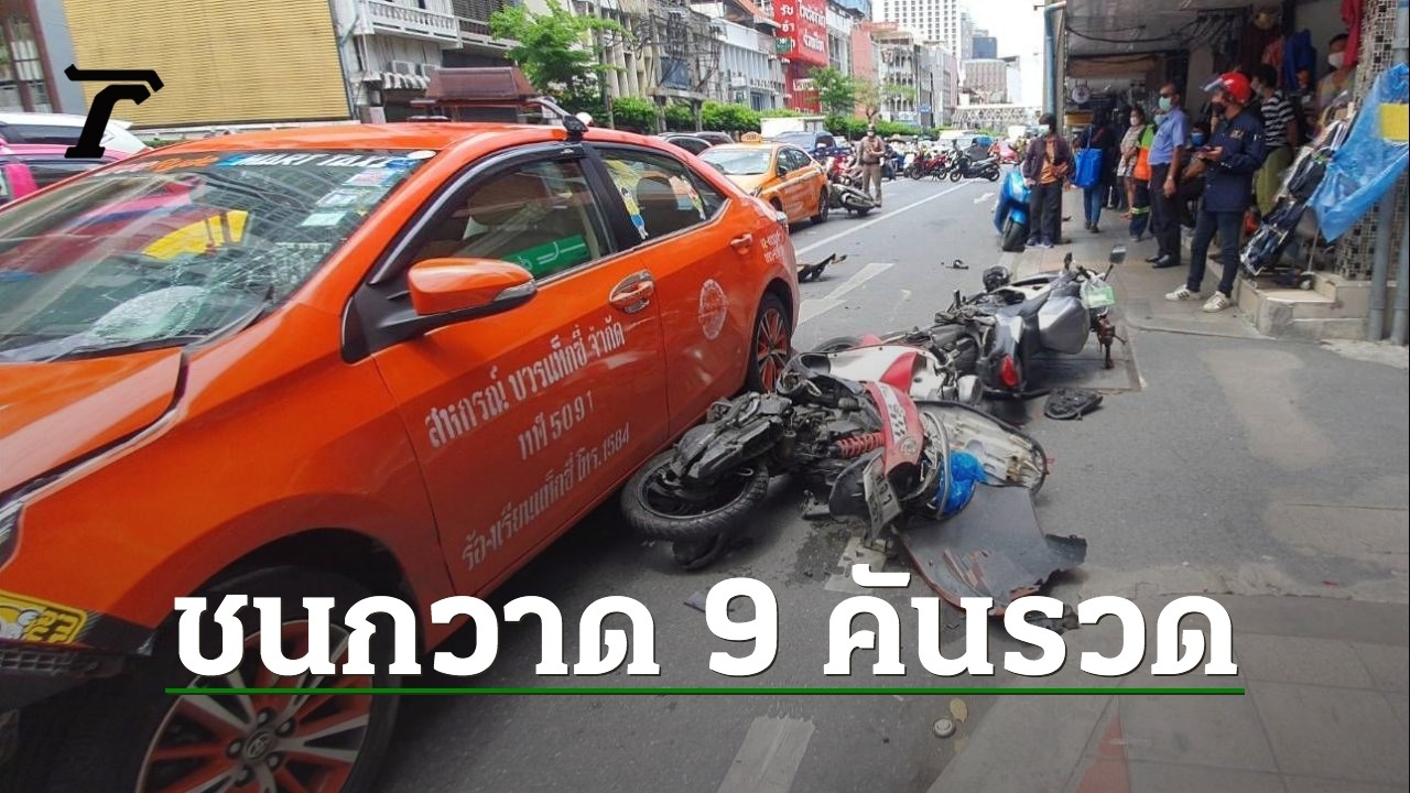 เกิดอุบัติเหตุ แท็กซี่ชนกวาด จยย.และรถเก๋งจอดติดไฟแดงแยกนิคมมักกะสัน บน ถนนราชปรารภ รวม 9 คัน เจ็บรวม 4 คน ตร.พญาไท คุมตัวคนขับที่ชนไปสอบสวน เพื่อดำเนินคดี ตามกฎหมายต่อไป