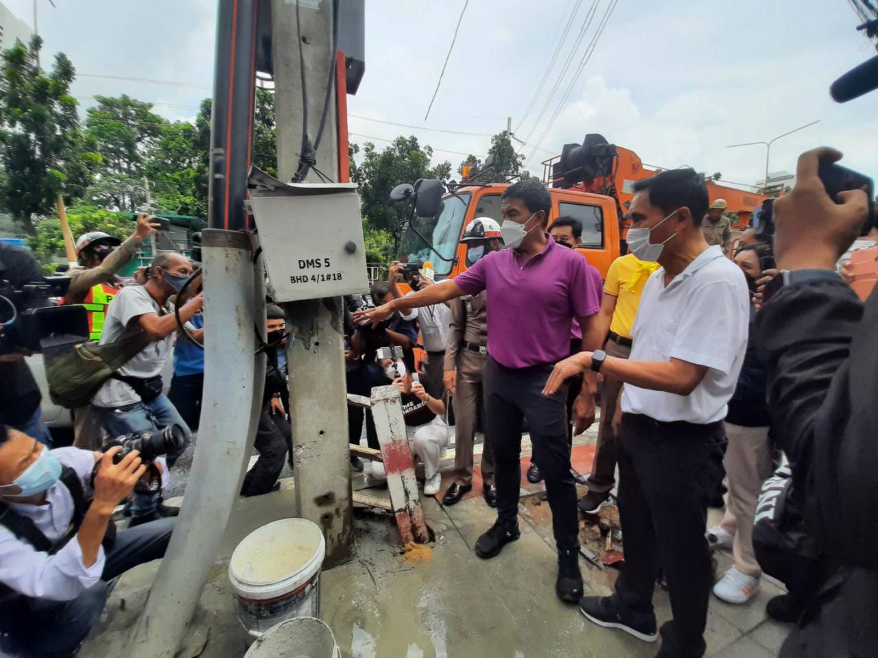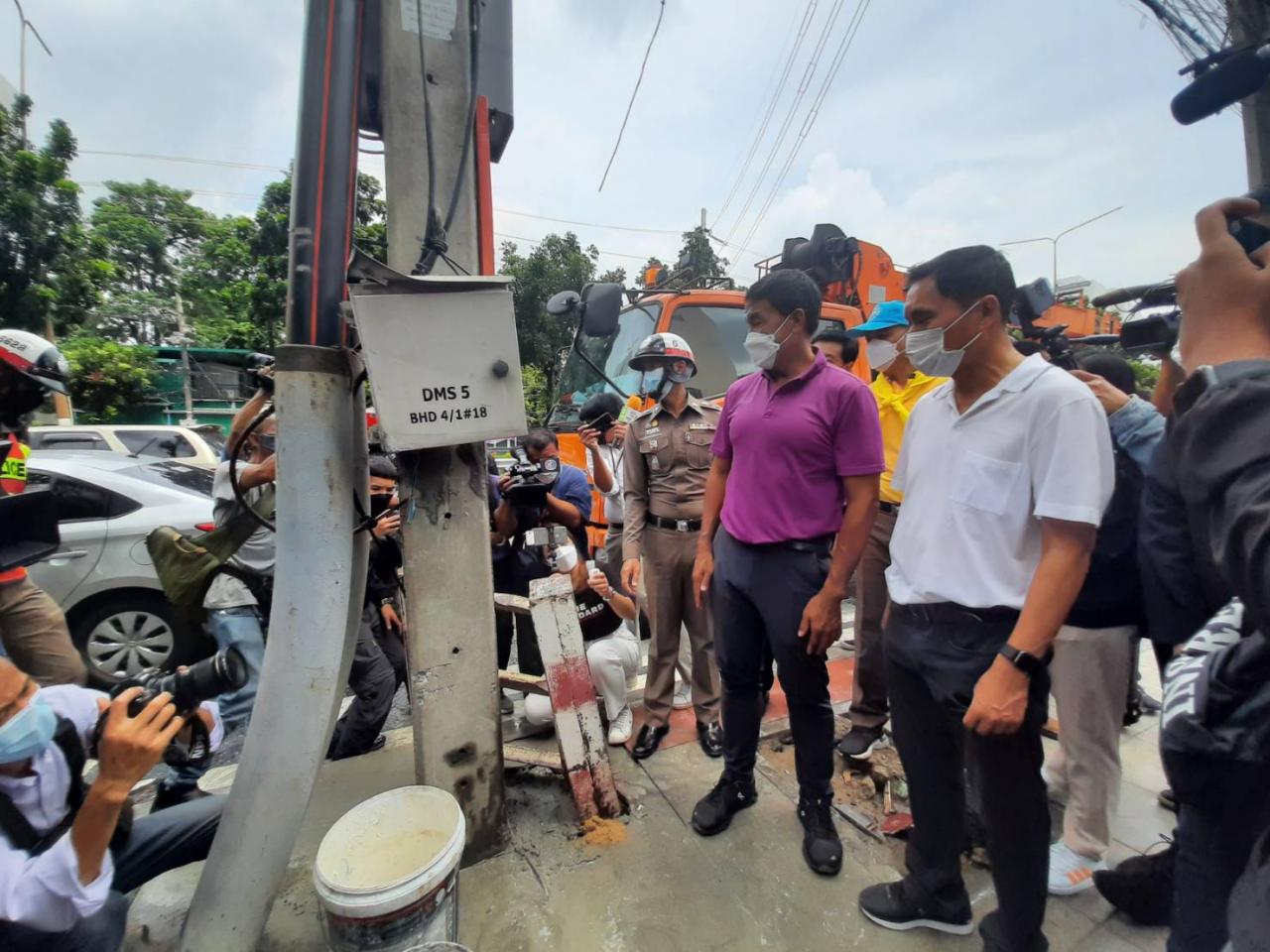 "ชัชชาติ" ฟิต ลงพื้นที่ดูจุดเกิดเหตุกระบะบรรทุกคนงาน ซิ่งฝ่าสายฝนถนนลื่น พุ่งชนเสาไฟฟ้าโค้ง 100 ศพ ตรงข้ามศาลอาญา ดับ 5 เจ็บ 2 เล็งประกาศให้เป็นเขตจำกัดความเร็วไม่เกิน 80 กิโลเมตรต่อชั่วโมง