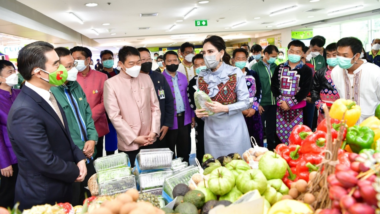 จากนั้น รมช.มนัญญา และคณะ เดินเยี่ยมชมบูธแสดงสินค้าของชุมนุมสหกรณ์ฯ ได้แก่ สินค้าผัก ผลไม้ที่มีการซื้อขายกับบิ๊กซี สินค้าเกษตรแปรรูปที่ต้องการเสนอขายเพิ่มเติม เช่น อินทผลัมแดง/ส้ม/เหลือง แก้วมังกร สับปะรดภูแล ฝรั่งออร์แกนิก เสาวรสพันธุ์หม่าเทียนซิง สับปะรดพันธุ์กรีนปัตตาเวีย และสินค้าผักผลไม้อื่นๆ พร้อมทั้งได้เยี่ยมชมสินค้าแปรรูปของสหกรณ์/กลุ่มเกษตรกรในเขตภาคเหนือที่นำมาร่วมจัดแสดง อาทิ ซอสพริก น้ำพริกเผา พริกป่น จากสหกรณ์การเกษตรปฏิรูปที่ดินท่าวังผา จำกัด จ.น่าน ไส้อั่วปลานิล ปลานิลแดดเดียว จากสหกรณ์ประมงพาน จำกัด จ.เชียงราย สับปะรดกวน เครกเกอร์สับปะรด น้ำยางล้างจาน จาก สหกรณ์ผู้ปลูกสับปะรดลำปาง จำกัด จ.ลำปาง นอกจากนี้ ยังได้เยี่ยมชมสินค้าแปรรูปที่ได้รับมาตรฐานพร้อมเข้าสู่ตลาดโมเดิร์นเทรดของเครือข่ายสหกรณ์ในพื้นที่จ.เชียงใหม่ ได้แก่ กาแฟคั่วเมล็ด กาแฟดริป ของสหกรณ์การเกษตรดอยสะเก็ดพัฒนา จำกัด ฯลฯ.