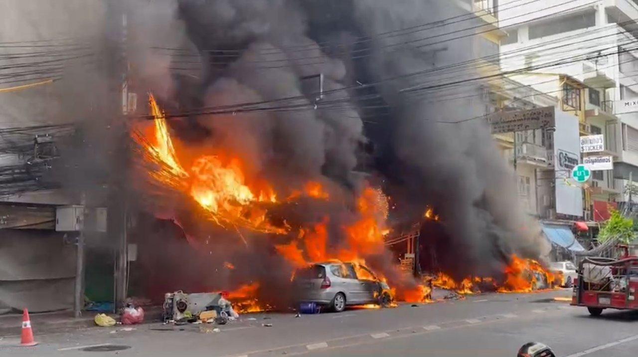 เบื้องต้นเป็นอาคารพาณิชย์ 3 ชั้น เพลิงกำลังลุกไหม้ จากหม้อแปลงตรงเสาไฟฟ้า ก่อนจะลุกลามเข้าอาคารและรถยนต์ซึ่งจอดอยู่ริมถนนได้รับความเสียหาย จำนวน 2 คัน ในเบื้องต้น เจ้าหน้าที่อยู่ระหว่างดำเนินการใช้น้ำทำการดับ เพื่อควบคุมเพลิงให้อยู่ในวงจำกัด