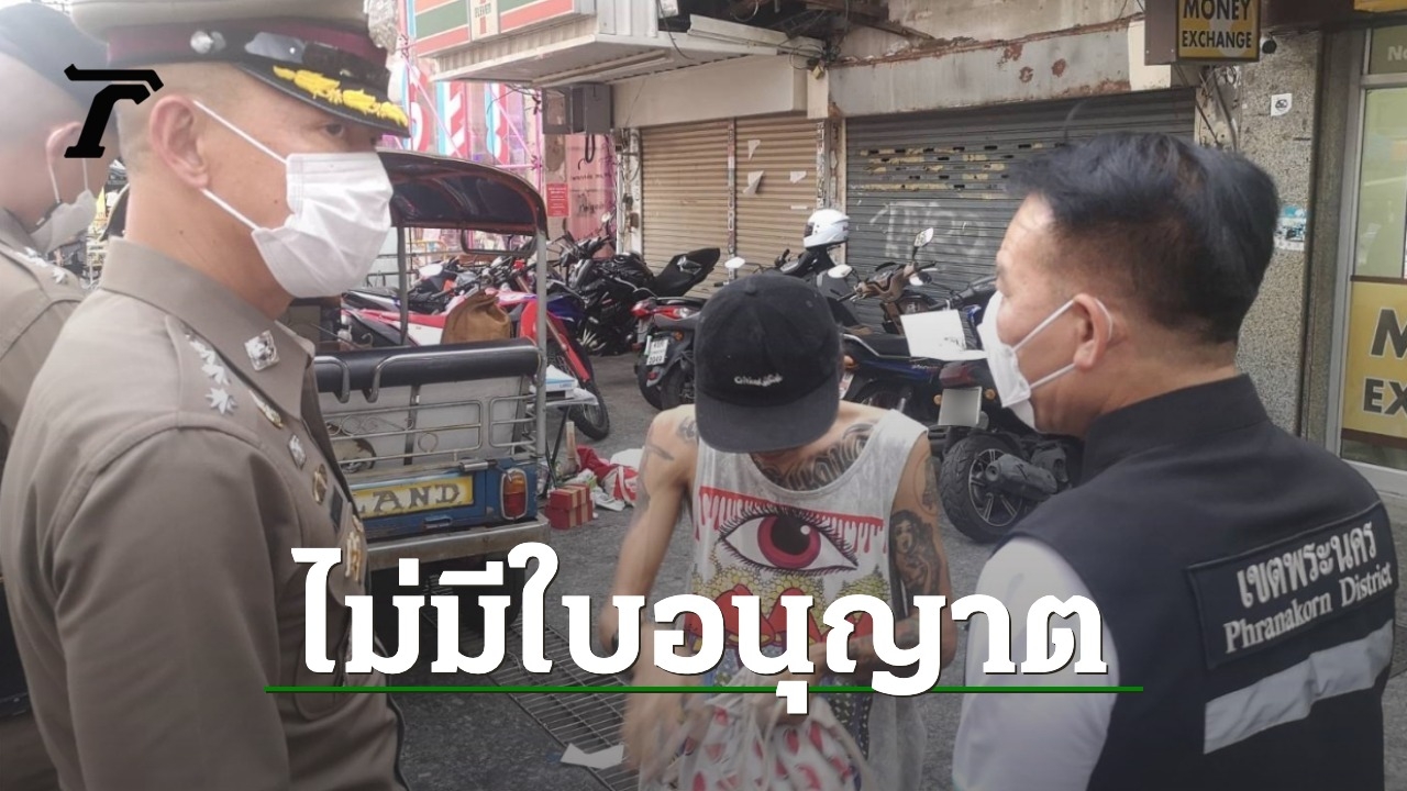 แค่ตักเตือน ผอ.เขตพระนคร สั่งเก็บโต๊ะพร้อมอุปกรณ์ขายกัญชาพันลำ ถนนข้าวสาร หลังขอดูใบอนุญาต แต่ไม่พบ หากยังฝ่าฝืน จับเปรียบเทียบปรับอัตราโทษสูงสุดคือ 2,000 บาท
