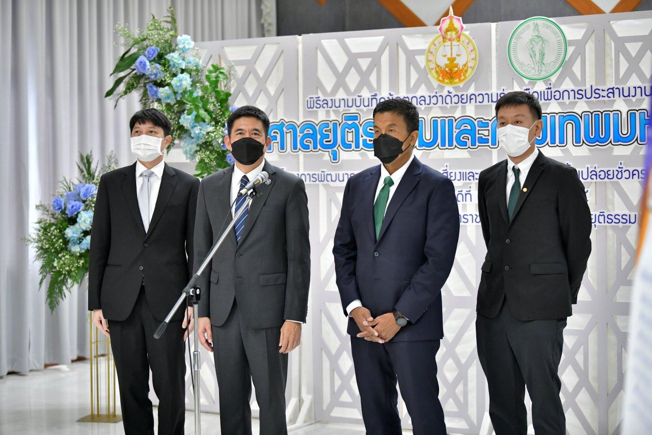 เมื่อเวลา 09.00 น. วันที่ 30 มิถุนายน 2565 ที่ห้องประชุมสัญญาธรรมศักดิ์ ชั้น 7 สถาบันพัฒนาข้าราชการฝ่ายตุลาการศาลยุติธรรม นายจีระพัฒน์ พันธุ์ทวี เลขาธิการสำนักงานศาลยุติธรรม และนายชัชชาติ สิทธิพันธุ์ ผู้ว่าราชการกรุงเทพมหานคร ร่วมลงนามบันทึกข้อตกลงความร่วมมือระหว่างสำนักงานศาลยุติธรรมและกรุงเทพมหานคร ว่าด้วยความร่วมมือเพื่อการประสานงานระหว่าง ศาลยุติธรรมกับกรุงเทพมหานคร ในโครงการพัฒนาระบบประเมินความเสี่ยงและการกำกับดูแลในชั้นปล่อยชั่วคราวของศาลยุติธรรม