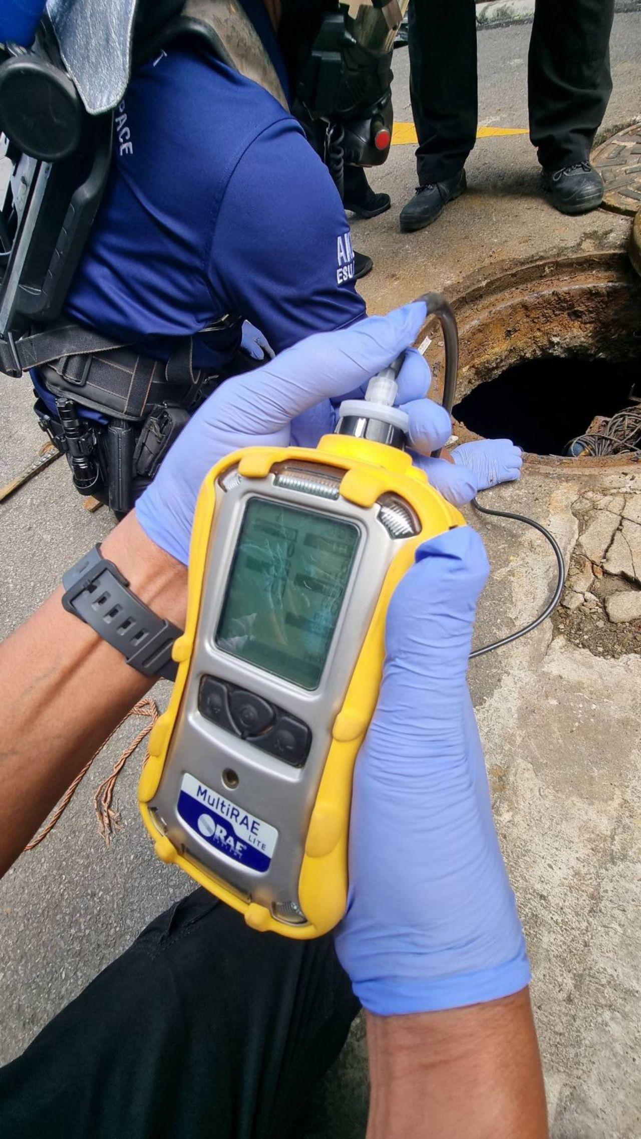 สำหรับแก๊สที่ตรวจวัดหลักๆ จะวัดค่าออกซิเจน ไฮโดรเจนซัลไฟด์ (H2s) และแอมโมเนีย ซึ่งแก๊สเหล่านี้หากมีปริมาณมากจะเป็นอันตรายต่อร่างกายเป็นเหตุให้หมดสติหรือเสียชีวิต เจ้าหน้าที่ใช้เวลาในการตรวจสอบประมาณ 20 นาที พบว่าเครื่องตรวจส่งเสียงดัง หมายความว่าระดับความเข้มข้นของปริมาณแก๊สที่อยู่ด้านล่างส่งผลอันตรายถึงชีวิต วัดค่าความเข้มออกซิเจนในบ่อดังกล่าวได้ 19.8 เปอร์เซ็นต์ ซึ่งปกติมนุษย์สามารถต้องใช้ค่าออกซิเจน ร้อยละ 21 ในการหายใจ