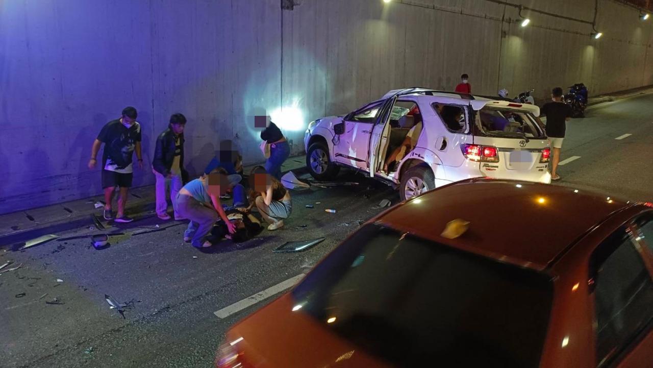 รถฟอร์จูนเนอร์ คนขับ และคนนั่งเป็นหญิงสาวทั้งหมด 8 คน ออกจากสถานบันเทิงย่านถนนนวมินทร์ ลงอุโมงค์เกษตรมุ่งหน้ากลับบ้านที่นนทบุรี เกิดอุบัติเหตุได้รับบาดเจ็บทั้ง 8 คน ตำรวจนำตัวคนขับไปตรวจปริมาณแอลกอฮอล์