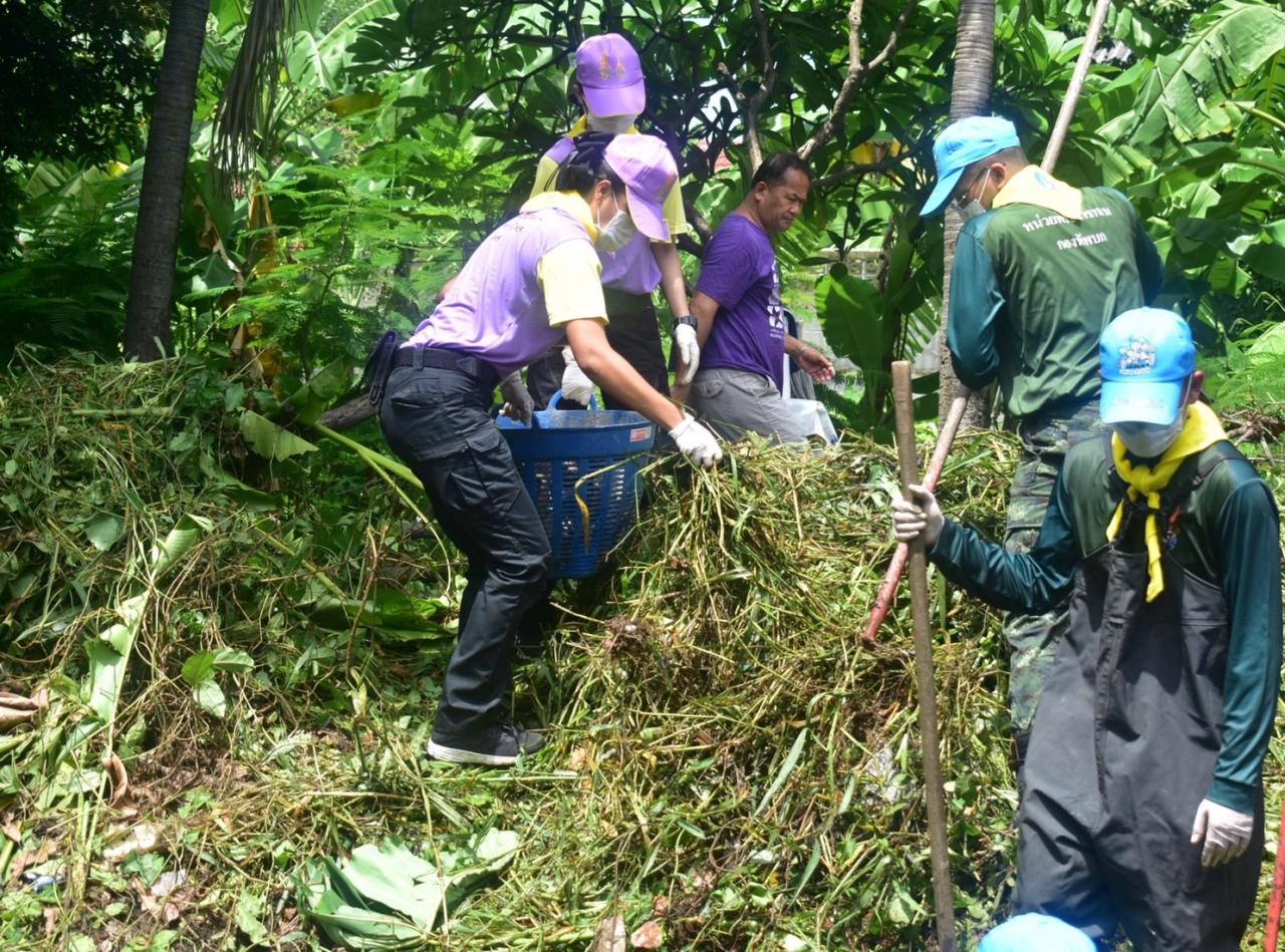 ร่วมกับ เทศบาลปากเกร็ด และประชาชนจิตอาสาชุมชนเลียบคลองบางส่วน ดำเนินการกำจัดวัชพืช เก็บขยะ ทำความสะอาด คลองบางส่วน (เลียบคลองประปา) อ.ปากเกร็ด จว.น.บ. เพื่อเปิดช่องทางระบายน้ำ ให้สามารถระบายน้ำได้ดีในช่วงที่มีฝนตกหนัก