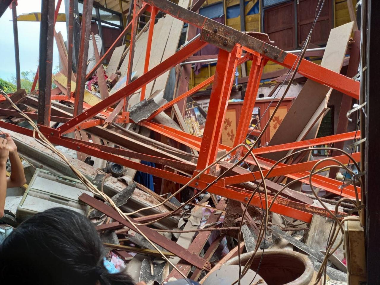เมื่อเวลา 15.30 น. วันที่ 27 สิงหาคม 2565 ร.ต.อ.ปรากรม ชูขาว รอง สว.(สอบสวน) สน.มีนบุรี รับแจ้งเหตุปั้นจั่นขนาดใหญ่ล้มทับบ้านเลขที่ 17/7 ชุมชนสุเหร่าบ้านเกาะ ซอยสุวินทวงศ์7 แขวงแสนแสบ เขตมีนบุรี กทม. รุดไปตรวจสอบพร้อมเจ้าหน้าที่มูลนิธิร่มไทร