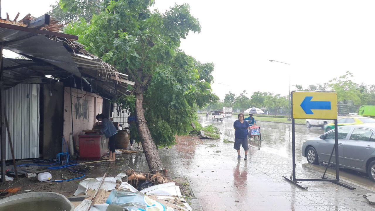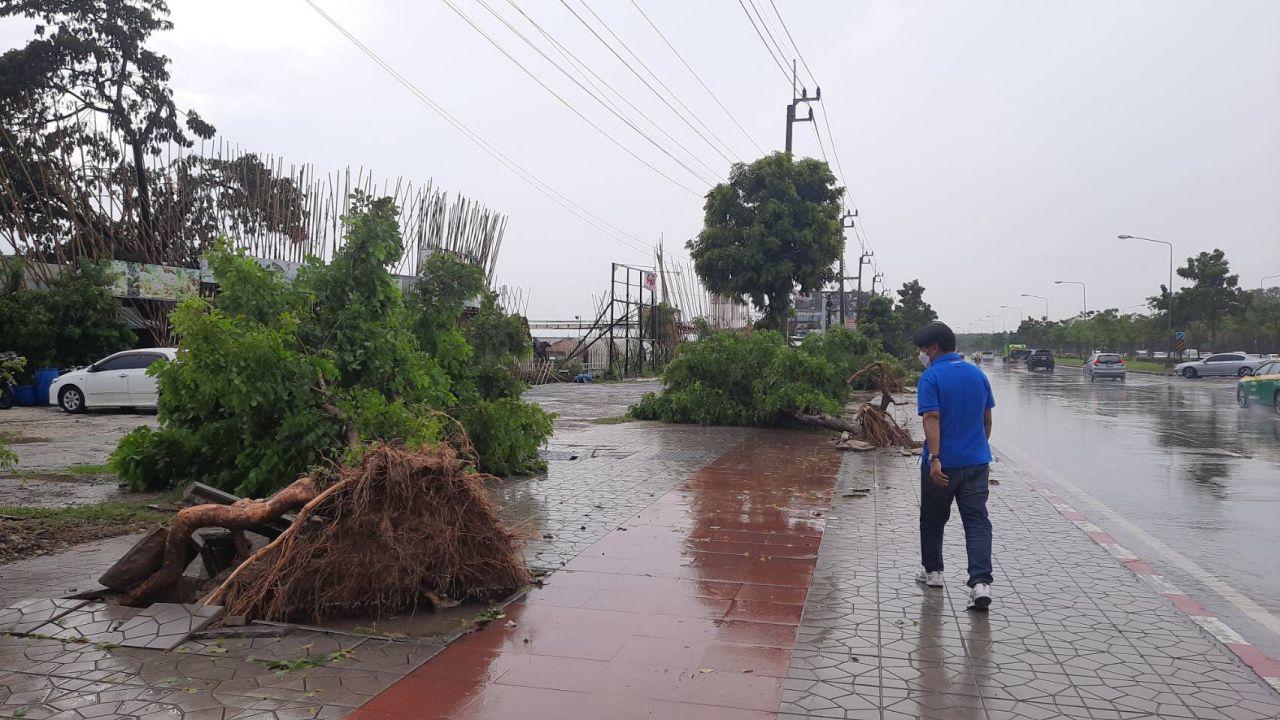ต่อมามีเจ้าหน้าที่สำนักงานเขตบางเขน นำรถ 6 ล้อ หลายคัน พร้อมอุปกรณ์ตัดต้นไม้ มาระดมตัดต้นไม้ที่ล้มโค่น เคลื่อนย้ายออกจากถนนให้พ้นการกีดขวางจราจร และเคลื่อนย้ายให้พ้นฟุตปาทขวางทางเดิน ตัดต้นไม้ที่ล้มทับรถ และชายคาบ้านหลังดังกล่าว
