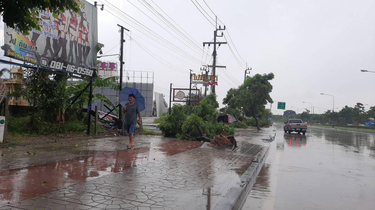 นอกจากนี้บนถนนเส้นเดียวกันยังมีต้นแคนาล้มใส่รถ จยย.เสียหาย 1 คัน และล้มใส่ชายหลังคาบ้านหลังหนึ่ง เบื้องต้นเหตุการณ์ลมพายุพักกระโชกแรงครั้งนี้ ยังไม่มีรายงานผู้บาดเจ็บ