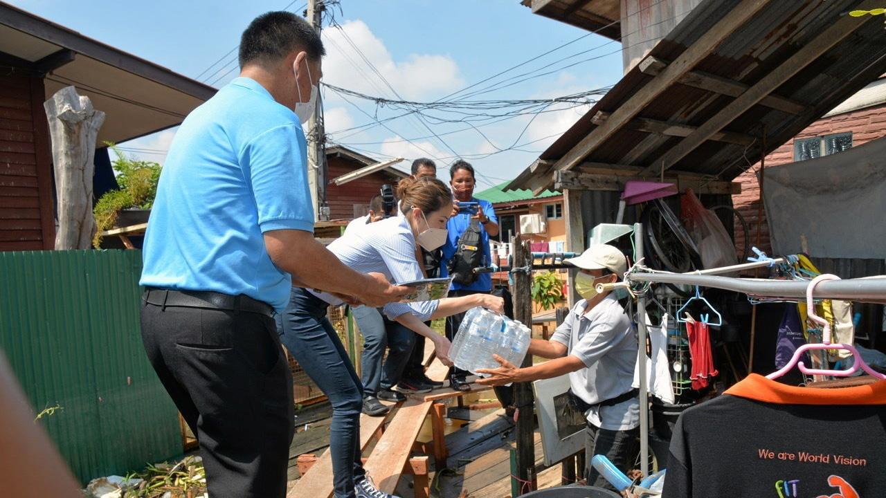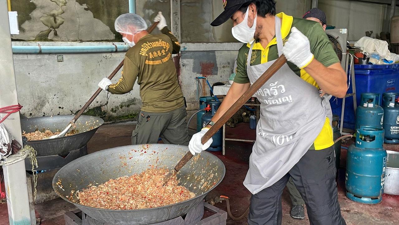 นายบิณฑ์ บันลือฤทธิ์ และอาสาสมัครมูลนิธิร่วมกตัญญูรวม 50 นาย ตั้งโรงครัวสนามทำอาหารปรุงสุก เพื่อนำไปมอบให้กับชาวบ้านในหมู่บ้านแสงตะวัน หมู่ 4 ต.บางเพียง อ.บางบ่อ จ.สมุทรปราการ เกิดน้ำท่วมขังสูงเข้าออกอย่างลำบาก นายบิณฑ์เปิดเผยว่า ชาวบ้านในหมู่บ้านแสงตะวันได้รับความเดือดร้อน ตนและอาสามูลนิธิร่วมกตัญญูจัดข้าวกล่องจำนวน 730 กล่อง แจกจ่ายชาวบ้านที่ต้องอยู่ในสภาพติดเกาะ พร้อมนำข้าวสารอาหารแห้งแจกกว่า 400 ครัวเรือน
