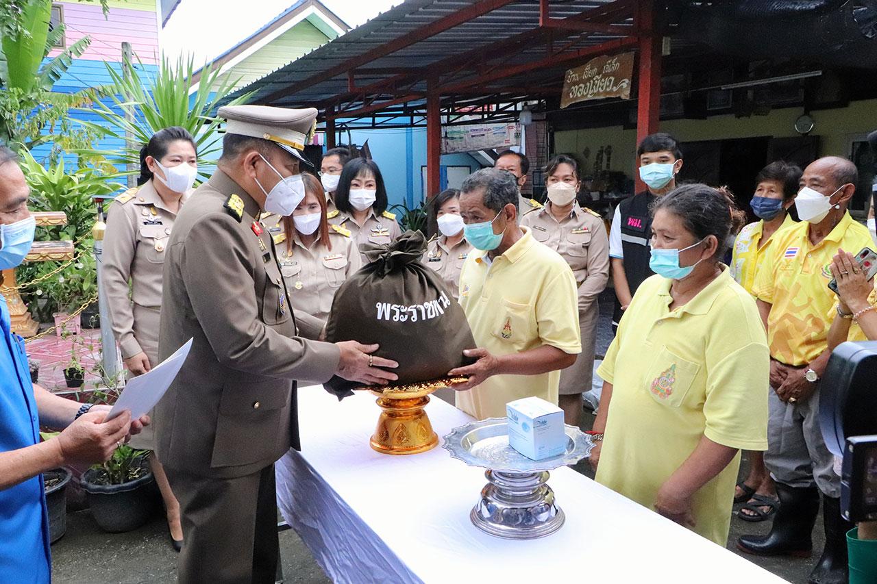 ต่อมาเวลา 14.45 น. พระบาทสมเด็จพระเจ้า อยู่หัว ทรงพระกรุณาโปรดเกล้าโปรดกระหม่อมให้ พล.อ.กัมปนาท รุดดิษฐ์ องคมนตรี ร่วมกับมูลนิธิราชประชานุเคราะห์ ในพระบรมราชูปถัมภ์ เชิญถุงพระราชทานและเครื่องอุปโภคบริโภคจำนวน 900 ถุง ไปมอบแก่ ผวจ.สมุทรปราการ และนายอำเภอที่ประสบอุทกภัยเป็นตัวแทนราษฎร ณ หอประชุมโรงเรียนอนุบาลชุมชนบางบ่อ อ.บางบ่อ จ.สมุทร ปราการ เพื่อช่วยบรรเทาความเดือดร้อนในเบื้องต้น และเป็นขวัญกำลังใจ