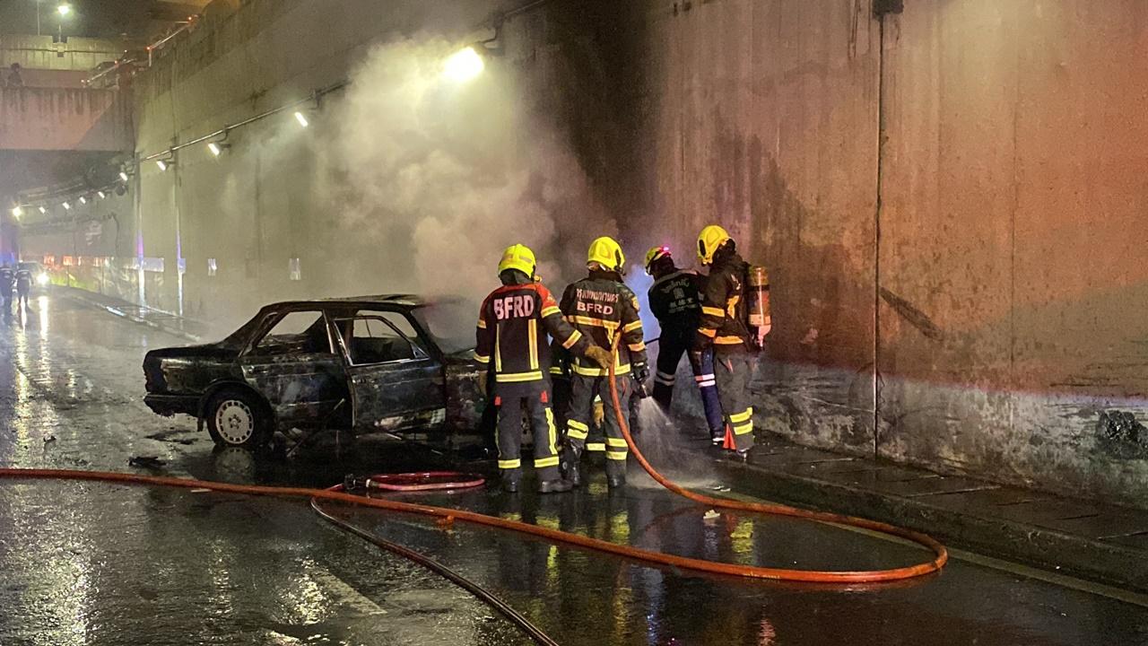 ที่เกิดเหตุพบรถเบนซ์ w126 สีน้ำเงิน หมายเลขทะเบียน ธจ 4855 กทม.สภาพหน้ารถพุ่งชนกำแพงปูนอุโมงค์ทำให้เพลิงไหม้โหมรุนแรง เจ้าหน้าที่จึงฉีดน้ำดับไฟใช้เวลาประมาณ 15 นาทีเพลิงสงบลง พบว่ารถคันดังกล่าวได้รับความเสียหายหมดทั้งคัน
