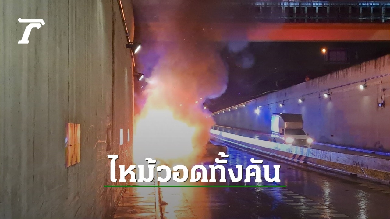 รถเบนซ์เสียหลักชนกำแพงในอุโมงค์เกษตร เป็นเหตุให้เกิดไฟลุกไหม้อย่างรวดเร็ว คนขับเคราะห์ดีเปิดประตูหนีออกมาได้ทัน