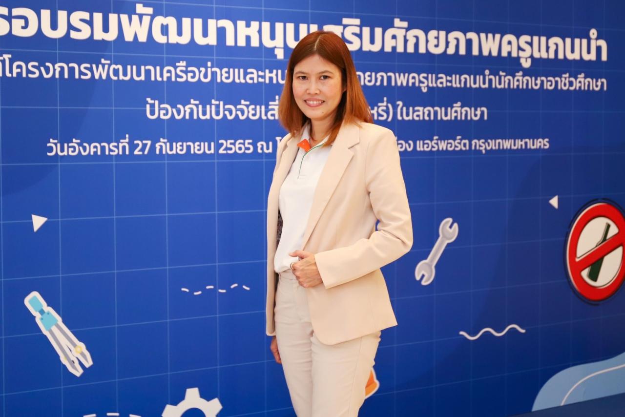 นางสาวรุ่งอรุณ ลิ้มฬหะภัณ ผู้อำนวยการสำนักสนับสนุนการควบคุมปัจจัยเสี่ยงทางสังคม สสส. กล่าวว่า สสส. ได้สนับสนุนโครงการพัฒนาเครือข่ายและหนุนเสริมศักยภาพครูและแกนนำนักศึกษาอาชีวศึกษา ป้องกันปัจจัยเสี่ยง (เหล้า บุหรี่) ในสถานศึกษา มาอย่างต่อเนื่อง เพื่อขยายแนวร่วมในการทำงานเพื่อสร้างภูมิคุ้มกันเยาวชนให้รู้เท่าทันปัจจัยเสี่ยง เหล้า บุหรี่ ที่เป็นต้นเหตุต่อเนื่องไปยังปัจจัยเสี่ยงอื่นๆ เช่น ยาเสพติด รวมถึงปัจจัยเสี่ยงด้านการพนัน ทั้งการสร้างความรู้ความเข้าใจ การช่วยเหลือกลุ่มเสี่ยง กลุ่มเปราะบาง ตลอดจนการร่วมดูแลสิ่งแวดล้อมให้ปลอดจากปัจจัยเสี่ยง โดยมีครู นักเรียน นักศึกษาเข้าร่วมโครงการจำนวนมาก ซึ่งเป็นตัวแทนจากทุกแผนกวิชาเข้าร่วมฝึกฝนทักษะ จนเกิดเป็นแกนนำครู นักเรียน นักศึกษา เพื่อเป็นกำลังสำคัญในการช่วยป้องกันปัจจัยเสี่ยง ส่งผลหลายด้าน ต่อนักเรียน นักศึกษา เช่น ผลการเรียนดีขึ้น ลดการเกิดอุบัติเหตุ ลดการบาดเจ็บ การเสียชีวิต จากปัจจัยเสี่ยงต่างๆ