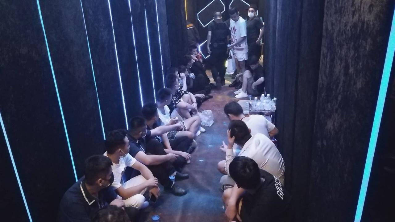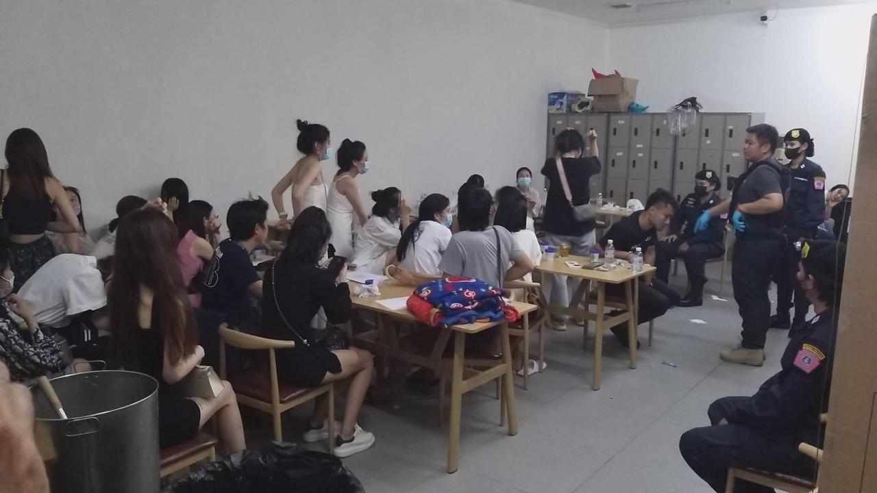 ต่อมาเจ้าหน้ากว่า 100 นาย ได้ทำการปิดล้อมตรวจค้น และขณะตรวจสอบ กลุ่มนักท่องเที่ยวและพนักงานต่างวิ่งหลบหนีเข้าไปซุกซ่อนตัวตามจุดและบริเวณต่างๆ ภายในอาคาร อาทิ ห้องครัว ห้องน้ำ มุมและซอกอาคาร อย่างชุลมุน หลังจากที่สามารถควบคุมสถานการณ์ได้จึงเข้าตรวจสอบ เบื้องต้นพบกลุ่มนักท่องเที่ยวส่วนใหญ่เป็นชาวจีนกว่า 237 คน เป็นชาย 111 คน หญิง 126 คน นอกจากนั้นยังพบพนักงานและบุคคลชาวกัมพูชา และชาวไทย ในบริเวณอาคารดังกล่าวอีกจำนวนกว่า 29 คน เจ้าหน้าที่จึงได้ทำการตรวจหาสารเสพติดในร่างกายของกลุ่มนักท่องเที่ยว เบื้องต้นพบสารเสพติดในร่างกายจำนวนกว่า 30 คน