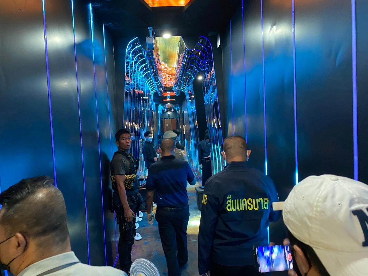 พล.ต.ต.นิติธร เปิดเผยว่า จากการเข้าตรวจค้นในวันนี้สืบเนื่องจากนโยบายของ พล.ต.อ.ดำรงค์ศักดิ์ กิตติประภัสร์ ผบ.ตร. ในการกวาดล้างยาเสพติดในแหล่งสถานบริการ รวมถึงการมั่วสุมเสพยาเสพติดตามสถานบันเทิงในพื้นที่อย่างเด็ดขาด ทางเจ้าหน้าที่จึงได้บูรณาการกับทุกภาคส่วน จนทราบว่าสถานที่แห่งนี้เปิดทำการเป็นสถานบริการ ร้านคาราโอเกะ ให้บริการกลุ่มนักท่องเที่ยวชาวต่างชาติโดยเฉพาะชาวจีน โดยไม่ได้รับอนุญาต อีกทั้งยังสืบทราบว่าสถานบันเทิงดังกล่าวมีพฤติการณ์ลักลอบจำหน่ายยาเสพติดให้แก่ลูกค้าที่มาใช้บริการ จัดสถานที่ให้มีการมั่วสุมยาเสพติด อีกทั้งยังมีการให้บริการรับฝากยาเสพติดที่ใช้บริการไม่หมด และจัดให้มีการเล่นพนันกันอย่างไม่เกรงกลัวต่อเจ้าหน้าที่และกฎหมาย ตำรวจจึงได้ขอหมายค้นของศาลอาญากรุงเทพใต้ ที่ 283/2565 ลงวันที่ 25 ต.ค. 65 เพื่อเข้าตรวจสอบอาคารดังกล่าว