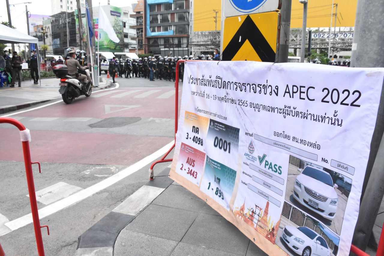 เวลา 11.00 น. วันที่ 16 พ.ย. ที่แยกอโศกมนตรีเจ้าหน้าที่ตำรวจกองร้อยควบคุมฝูงชน ได้เข้าปิดถนนบริเวณถนนรัชดาภิเษกไปจนถึงถนนพระราม 4 ซึ่งเป็นจุดที่มีการจัดการประชุมเอเปก ที่ศูนย์การประชุมแห่งชาติสิริกิติ์ โดยให้เฉพาะรถที่ได้รับใบอนุญาตผ่านเข้าออกเท่านั้น