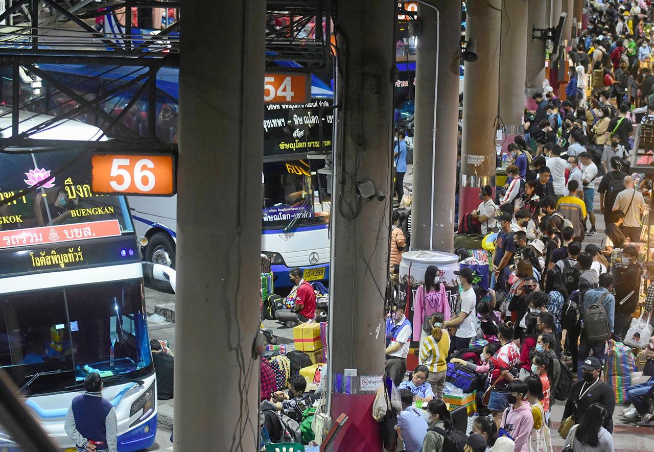 ที่สถานีขนส่งผู้โดยสารกรุงเทพฯ หรือหมอชิต 2 ถนนกำแพงเพชร จตุจักร ตลอดทั้งวันที่ 29 ธ.ค. มีประชาชนที่อาศัยอยู่ในพื้นที่กรุงเทพมหานครและปริมณฑล ทยอยเดินทางออกจากกรุงเทพฯกันอย่างคึกคักทั้งกลับภูมิลำเนาและไปเที่ยว โดยเฉพาะสายอีสาน มีผู้คนจำนวนมากหิ้วกระเป๋า แบกกระสอบและข้าวของสัมภาระต่างๆมาขึ้นรถโดยสาร ทำให้เคาน์เตอร์ขายบัตรรถโดยสาร มีผู้โดยสารที่ไม่ได้จองที่นั่งล่วงหน้ามาเข้าคิวต่อแถวยาวรอซื้อตั๋ว