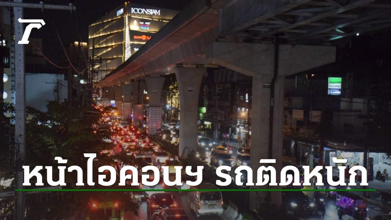 บรรยากาศบนถนนเจริญนคร ช่วงเย็นที่ผ่านมา สภาพการจราจรเป็นอัมพาต รถติดหนักหยุดนิ่งแทบทุกช่องทาง เนื่องจากคนแห่ร่วมงานเคาต์ดาวน์ไอคอนสยาม ตำรวจระดมกำลังระบายรถ โดยคาดคลี่คลายหลังงานเลิกตอนตี 2