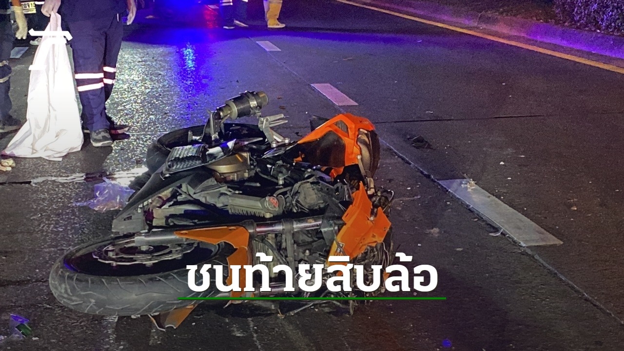 เกิดอุบัติเหตุรถจักรยานยนต์บิ๊กไบค์คันหนึ่งพุ่งชนท้ายรถบรรทุกสิบล้อบนถนนนวมินทร์ เมื่อกลางดึกที่ผ่านมา ทำให้คนขี่จักรยานยนต์เสียชีวิตคาที่