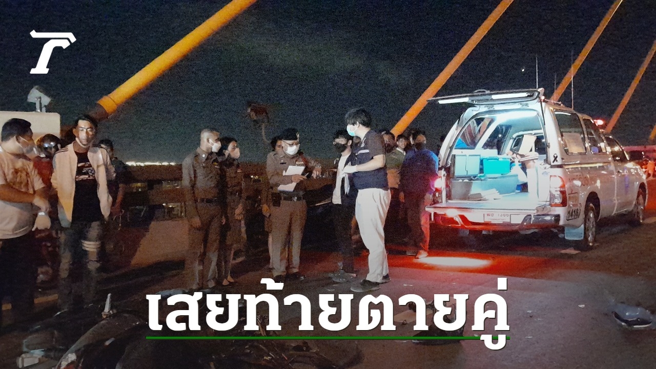 หนุ่ม 21 พาแฟนสาว ขับ จยย.มุ่งหน้ากลับบ้าน ขึ้นสะพานภูมิพล 1 เสยท้ายรถพ่วง คอหักดับคู่ ด้าน รปภ.รักษาการบนสะพานเผยจุดดังกล่าวมีอุบัติเหตุเกิดบ่อยครั้ง ล่าสุดเมื่อ 2 อาทิตย์ก่อน มีผู้เสียชีวิต 1 ราย