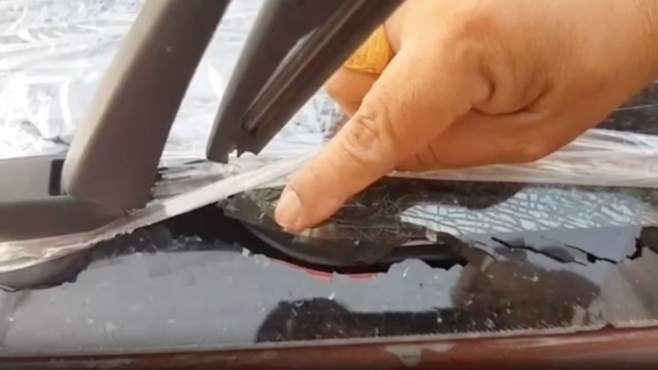 เก๋งกระจกรถแตก ระหว่างขับออกมาจากซอย ตอนแรกนึกว่าอากาศร้อน เปิดกล้องหลังรถดู คาดฝีมือแท็กซี่ ยิงหนังสติ๊กใส่ เจอเหรียญตกอยู่ในรถ