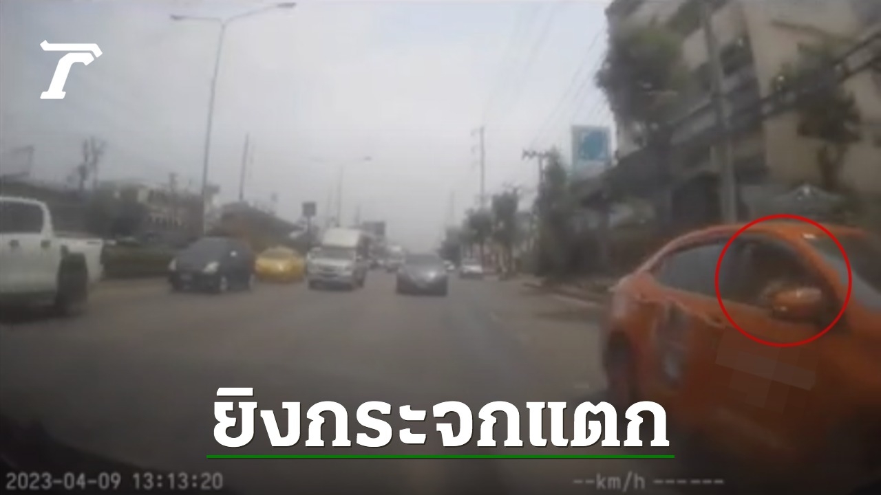 และเมื่อเปิดกล้องติดหลังรถดู ก็พบมีรถแท็กซี่สีส้ม ที่วิ่งตามมาด้านหลัง ใช้หนังสติ๊กยิงใส่กระจกรถของตนจนแตก ได้รับความเสียหาย ภายในรถยังพบเหรียญ 10 บาท จำนวน 1 เหรียญที่ตกอยู่ที่พื้นรถด้านเบาะหลัง เหตุการณ์ครั้งนี้โชคดีที่ไม่มีใครได้รับบาดเจ็บ