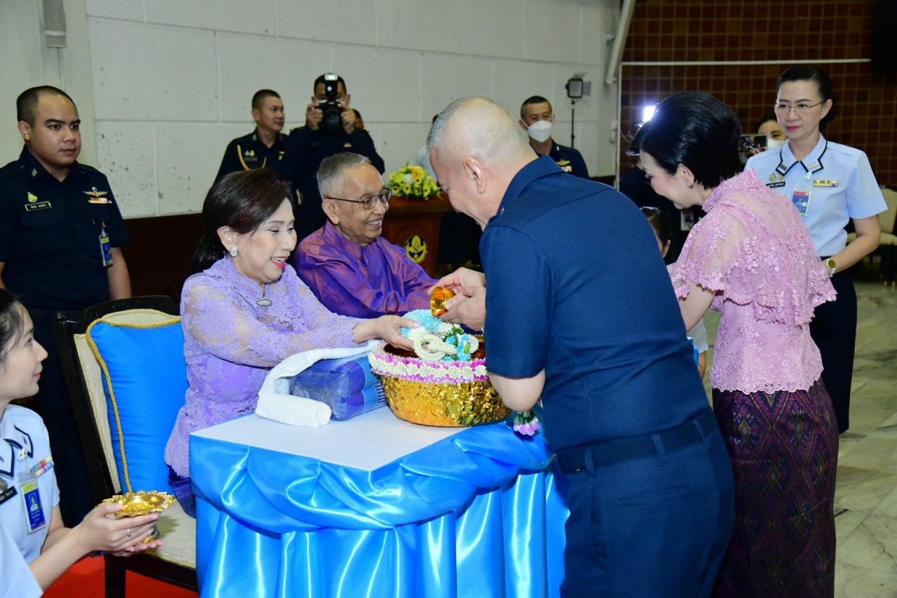 เข้ารดน้ำขอรับพรจากอดีตผู้บัญชาการทหารอากาศ และภริยา ได้แก่ พล.อ.อ.คงศักดิ์ วันทนา, พล.อ.อ.ตรีทศ สนแจ้ง, พล.อ.อ.ชัยพฤกษ์ ดิษยะศริน และ พล.อ.อ.นภาเดช ธูปะเตมีย์ เนื่องในประเพณีสงกรานต์ ประจำปี 2566 ณ อาคารรณนภากาศ โรงเรียนนายเรืออากาศนวมินทกษัตริยาธิราช