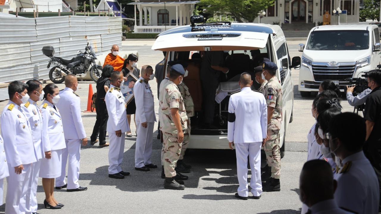 ครอบครัวนำร่าง "ผู้ว่าฯ หมูป่า" ณรงค์ศักดิ์ โอสถธนากร จากโรงพยาบาลศิริราช ไปประกอบพิธีทางศาสนา ที่วัดพระศรีมหาธาตุ บางเขน คณบดีแพทยศาสตร์ เผยผู้ว่าฯ ได้กำลังใจดีจากครอบครัว มีใจสู้ตลอด และได้ไปร่วมงานสำคัญ คืองานแต่งงานลูกสาว เป็นงานสุดท้าย
