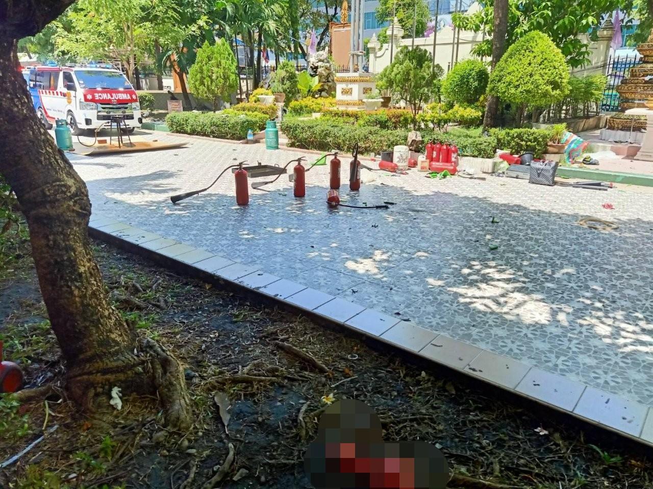 จากการสอบสวนทราบว่า ลักษณะที่เกิดเหตุเป็นลักษณะของการซ้อมแผนอพยพหนีไฟ ของคณะครูและนักเรียน ประจำเดือน ถังดับเพลิง CO2ได้เกิดระเบิดขึ้นจุดเกิดเหตุส่งผลให้มีนักเรียนเสียชีวิต 1 ราย นักเรียนบาดเจ็บ 5 ราย และผู้ฝึกซ้อม บาดเจ็บ 1 ราย ขณะนี้เจ้าหน้าที่อยู่ระหว่างตรวจสอบหน่วยงานใดเข้าทำการซ้อมแผนอพยพหนีไฟในครั้งนี้ และสาเหตุเกิดจากอะไร.