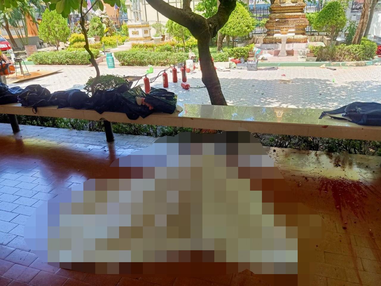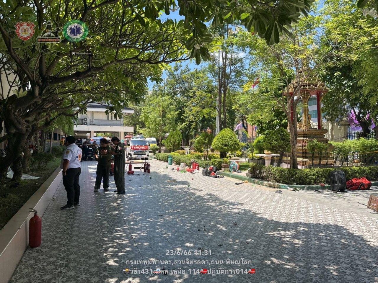 ที่เกิดเหตุบริเวณทางเดินหน้าห้องเรียนของอาคารเรียนพบศพนักเรียนชาย 1 ราย สภาพศพแต่งชุดนักเรียนนอนตะแคงขวา ร่างกายแขนขางอผิดรูป มีบาดแผลฉกรรจ์ที่บริเวณท้อง ชิ้นส่วนร่างกายแยกขาดกระเด็นนอกจากนี้ ยังมีนักเรียนและผู้ฝึกซ้อมบาดเจ็บ รวม 5 ราย นำส่งโรงพยาบาลวชิระ 1 ราย รพ.กลาง 1 ราย และบาดเจ็บเล็กน้อยปฐมพยาบาลอยู่ในโรงเรียน