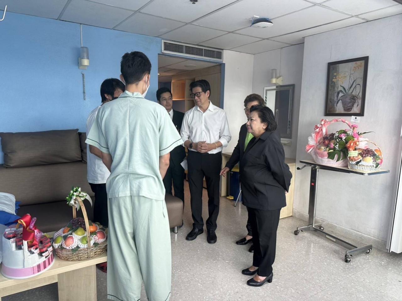 เมื่อเวลา 09.00 น. วันที่ 24 มิ.ย. 66 นายวิรัตน์ มีนชัยนันท์ ประธานสภา กทม. พร้อมคณะ เดินทางมาที่โรงพยาบาลวชิรพยาบาล เข้าเยี่ยมและให้กำลังใจนักเรียน 5 รายที่บาดเจ็บจากอุบัติเหตุถังดับเพลิงระเบิดภายในโรงเรียนราชวินิตมัธยม พร้อมเปิดเผยว่า ผู้บาดเจ็บส่วนใหญ่ยังมีปัญหาด้านการได้ยิน จากแรงดันของถังดับเพลิงที่มีระเบิดเสียงดังมาก และมีบาดแผลจากการถูกสะเก็ดถังดับเพลิง ทั้งนี้มีแพทย์ได้ให้การดูแลอย่างใกล้ชิด ส่วนสภาพจิตใจทั้งหมดยังอยู่ในภาวะเสียขวัญและช็อกกับเหตุการณ์ที่เกิดขึ้น พวกเขาบอกว่าภาพเหตุการณ์ยังคงติดตา และนักเรียนที่เสียชีวิตก็เป็นเพื่อนร่วมห้องที่เรียนมาด้วยกัน