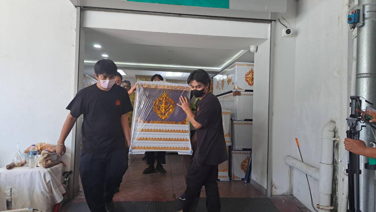 ต่อมาเจ้าหน้าที่มูลนิธิร่วมกตัญญู พร้อมบริษัทสุริยาหีบศพ นำน.ส.ปลา แสงเพชร อายุ 44 ปี นายภูมิรพี เปรมมณี อายุ 25 ปี แม่และพี่ชายน้องเบนซ์ มาดูโลงศพเทพพนม นำออกมาตั้ง พร้อมเปิดเห็นเลขใต้ฝาโลงพบเป็นหมายเลข 60 ก่อนเตรียมบรรจุร่างของน้องเบนซ์ และเคลื่อนย้ายไปยังวัดแคนางเลิ้งเพื่อประกอบพิธีกรรมทางศาสนาตามเวลากำหนดการ