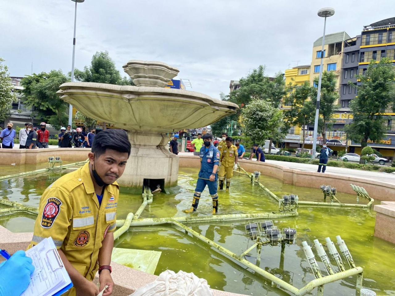 เมื่อเวลา 11.00 น. วันที่ 16 ก.ค.66 ร.ต.อ.ณัฎฐ์ธิพงศ์ สีดา รอง สว.สอบสวน สน.พลับพลาไชย 2 รับแจ้งพบศพชายเสียชีวิต ในบ่อน้ำพุกลางวงเวียน 22 ถนนวงเวียนยี่สิบสองกรกฎาคม แขวงป้อมปราบ เขตป้อมปราบศัตรูพ่าย กทม. จึงรุดไปตรวจสอบพร้อมแพทย์นิติเวช รพ.ตำรวจ และหน่วยกู้ภัยมูลนิธิป่อเต็กตึ๊ง