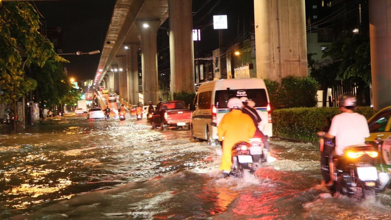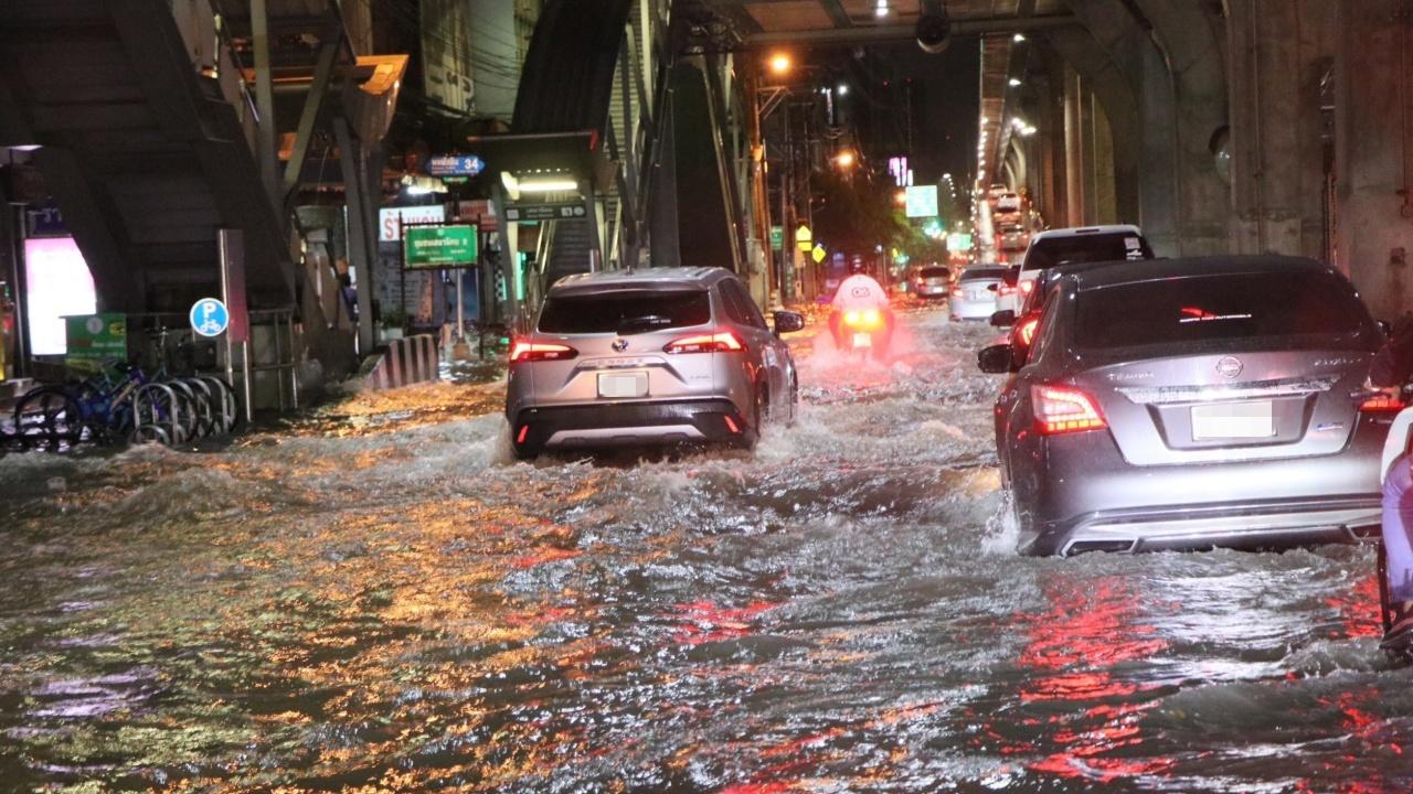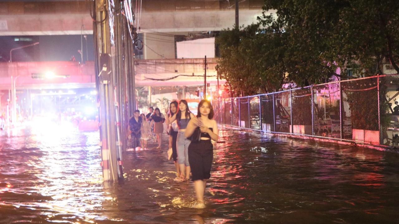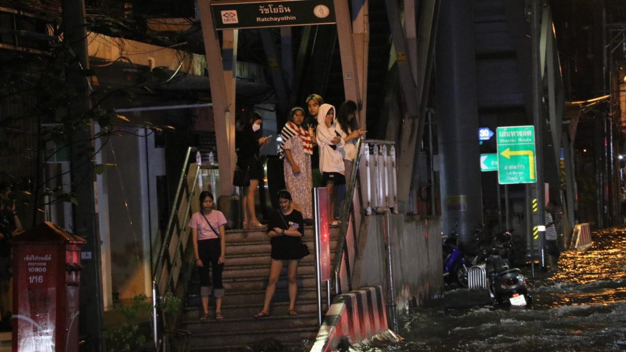 เมื่อวันที่ 21 ก.ค. 66 ผู้สื่อข่าวรายงาน เวลาประมาณ 21.00 น. กรุงเทพมหานคร เกิดฝนฟ้าคะนองตกลงมาอย่างหนักในหลายพื้นที่ ซึ่งฝนตกยาวต่อเนื่องจนถึงเวลาเกือบ 02.00 น. วันที่ 22 ก.ค. ส่งผลทำให้ถนนหลายจุดมีน้ำท่วมขัง รอการระบาย ประชาชนติดอยู่ตามจุดรอรถโดยสารหลายแห่ง โดยเฉพาะในเขตจตุจักร มีน้ำท่วมขังถนนหลายจุด เริ่มตั้งแต่ถนนพหลโยธิน หน้าห้างเมเจอร์รัชโยธิน ยาวไปจนถึงบริเวณห้าแยกลาดพร้าว และถนนวิภาวดี บริเวณดังกล่าวถูกน้ำท่วมขังหลายจุด สูงประมาณ 20 เซนติเมตร ทำให้ประชาชนที่มานั่งดื่มกินตามร้านอาหารต่างๆ ช่วงสุดสัปดาห์ ได้รับผลกระทบเดินทางกลับที่พักอย่างยากลำบาก ส่วนคนขับขี่รถจักรยานยนต์ ต้องจอดตามใต้สะพานลอยเพื่อหลบฝน เพราะเกรงว่าหากฝืนขับขี่ต่อไปอาจเสี่ยงต่อการเกิดอุบัติเหตุได้