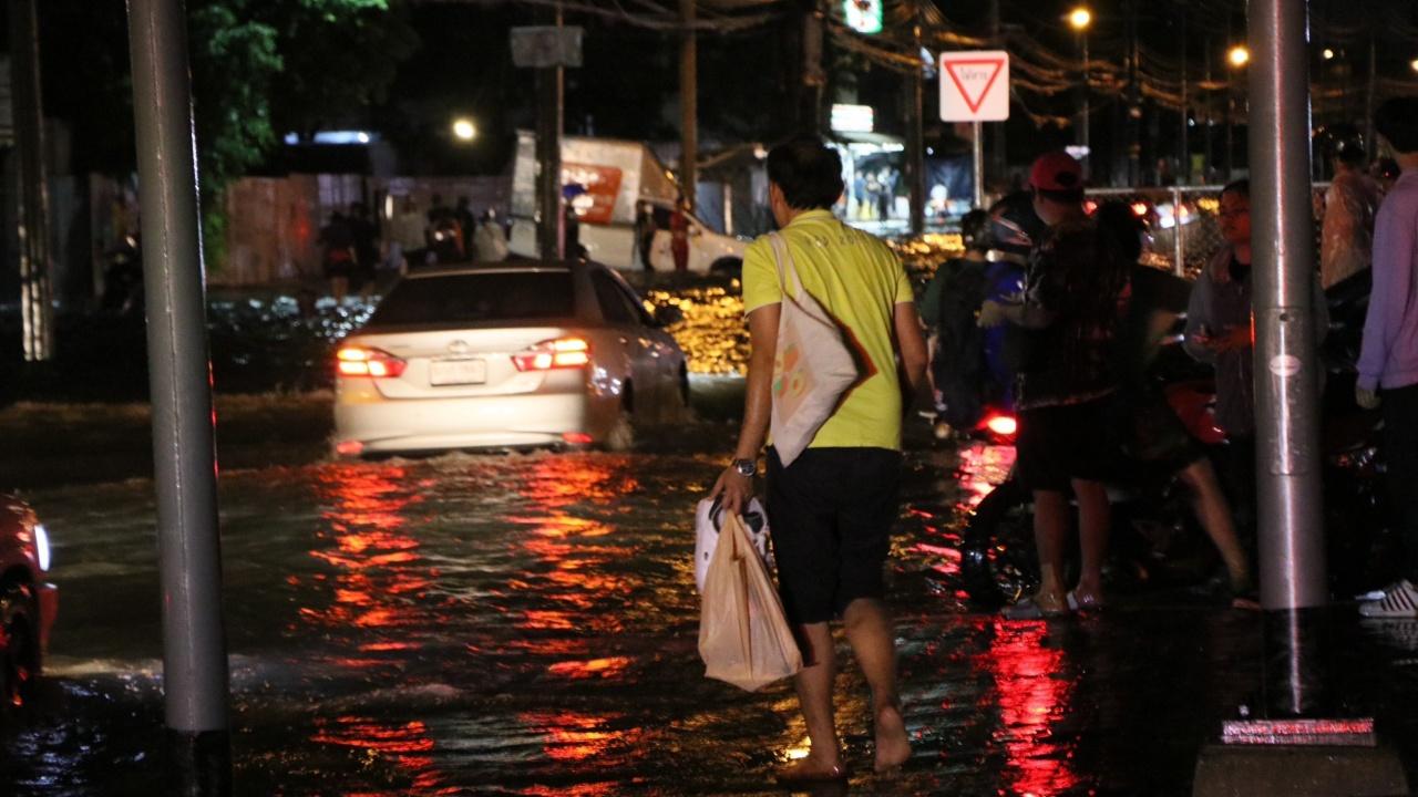 "ฝนถล่ม กทม." ตั้งแต่ค่ำยันดึก น้ำท่วมรอระบาย "จตุจักร" อ่วมจมหลายจุด "ถ.วิภาวดี-ถ.พลโยธิน-ห้าแยกลาดพร้าว-หน้าเมเจอร์รัชโยธิน" น้ำท่วมสูง 20 ซม. ส่วน "ถ.รัชดาฯ" หนักสุด จมเกือบ 50 ซม. จยย.-รถยนต์ จอดดับเพียบ ขณะที่ ปชช.สุดเซ็งเที่ยวดื่มพักผ่อนสุดสัปดาห์ ลุยน้ำกลับที่พักยากลำบาก