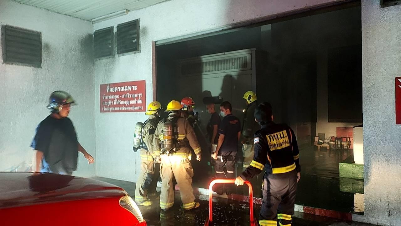 พบที่เกิดเหตุเป็นอาคารสูง 4 ชั้น ไฟฟ้าลัดวงจรที่ตู้ควบคุมระบบไฟฟ้าชั้น 1 เจ้าหน้าที่ตัดไฟ ใช้น้ำฉีดจนเพลิงสงบ ไม่มีผลกระทบกับตัวอาคาร แต่พบว่ามีกลุ่มควันจำนวนมาก จึงใช้พัดลมระบายควัน